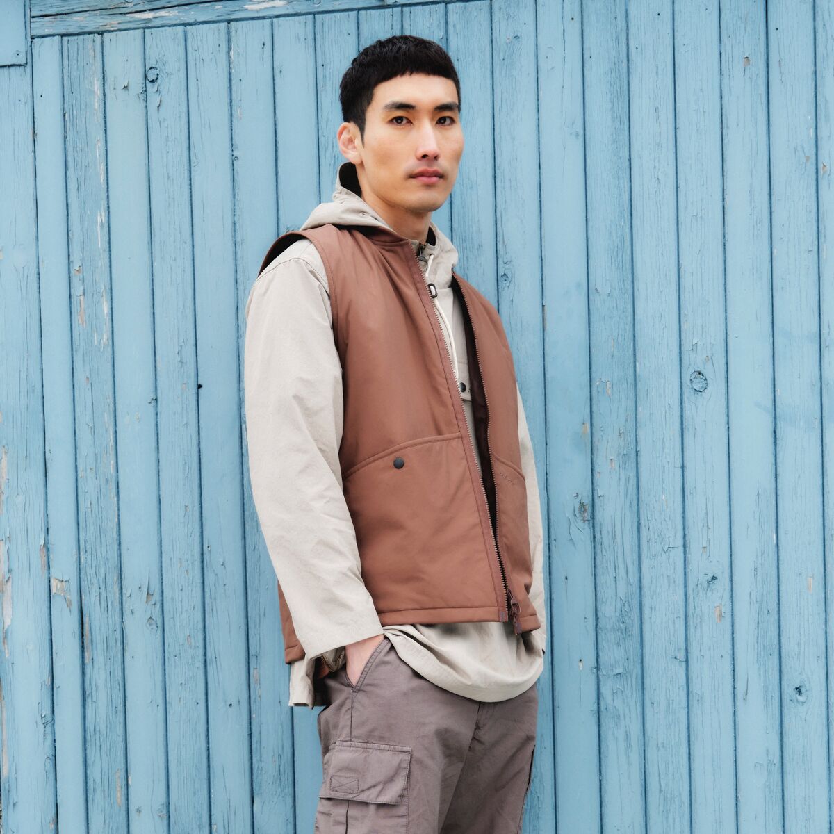 "This gilet is a great go-to layer for the in-between seasons. It’s lightweight but keeps me comfortable on cooler days, and the angled pockets are perfect for stashing essentials on the go. I love the relaxed fit, which layers easily over a sweater or shirt without feeling restrictive."