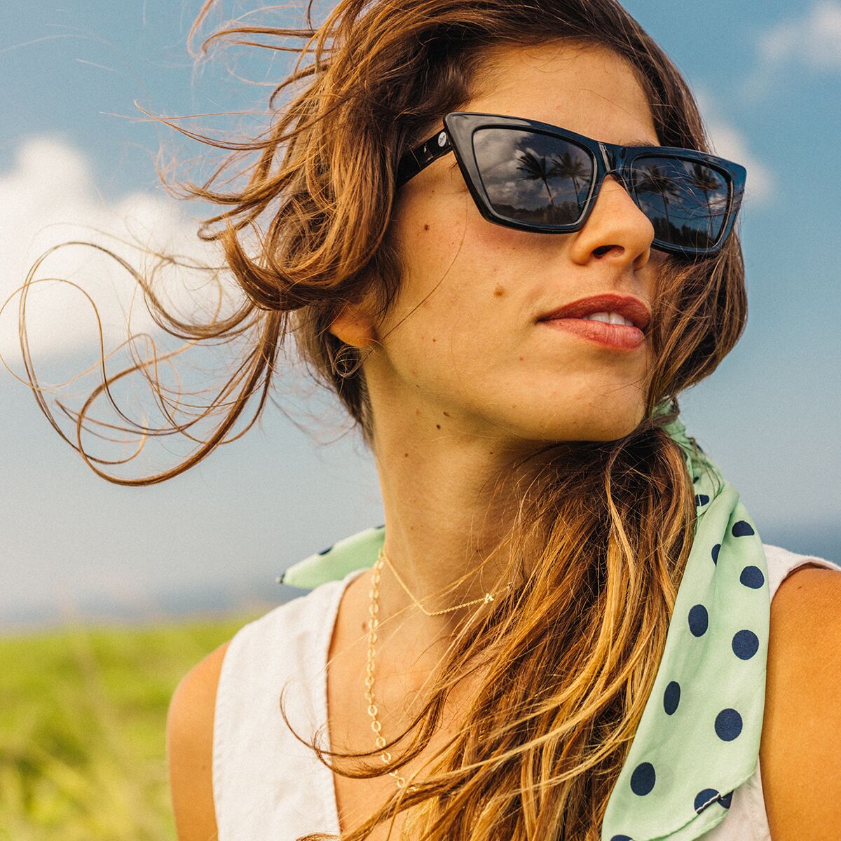 "I love how the Fiorella Sunglasses bring a stylish cat-eye shape to an adventure-ready design. The polarized Helio lenses cut glare and protect my eyes from UV rays, while the lightweight recycled frames feel comfortable all day. Whether I’m hiking, road-tripping, or just hanging out by the water, these shades are my go-to for both style and function."