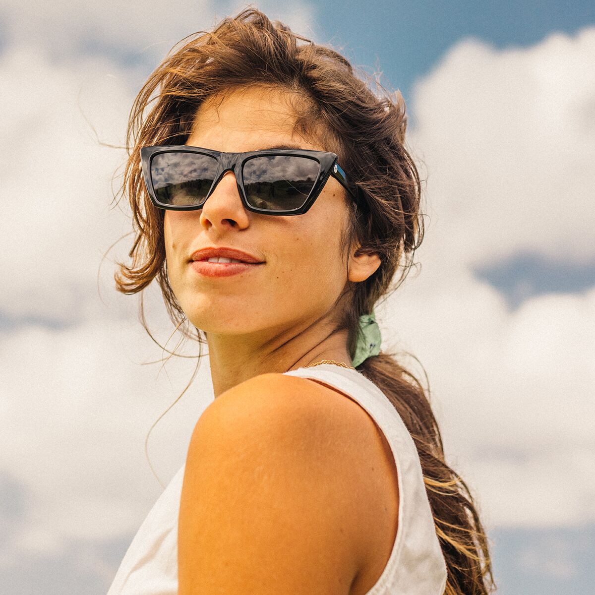 We love a pair of sunglasses that effortlessly blends style and performance, and the Fiorella Polarized Sunglasses do just that. The classic cat-eye frame gives us a bold yet playful look, while the lightweight, recycled material ensures all-day comfort.