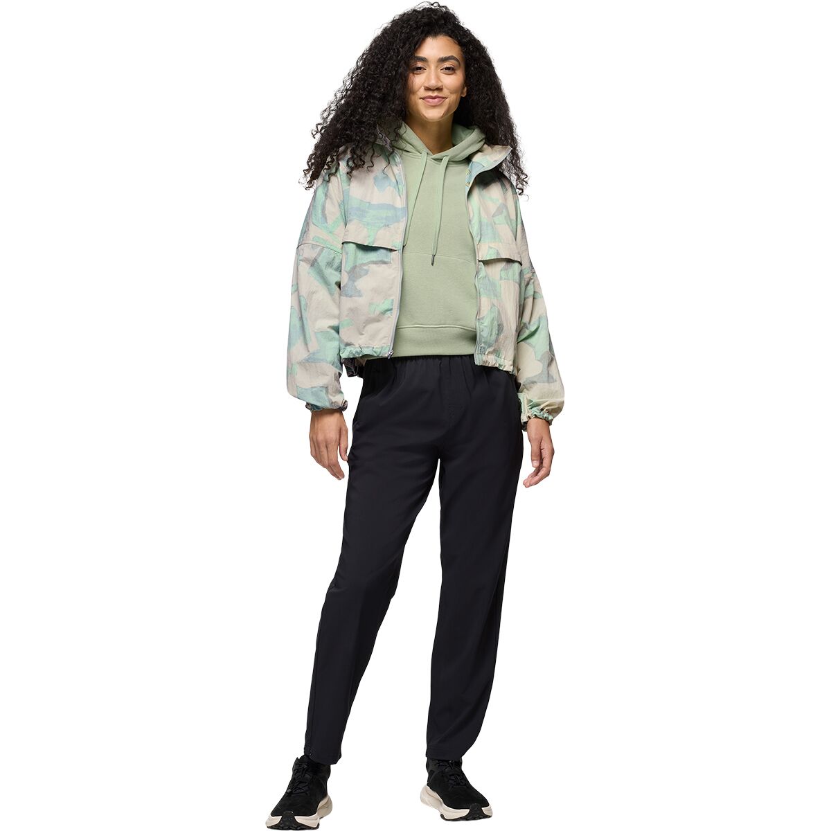 - 85% recycled polyester, 15% spandex, DWR treatment