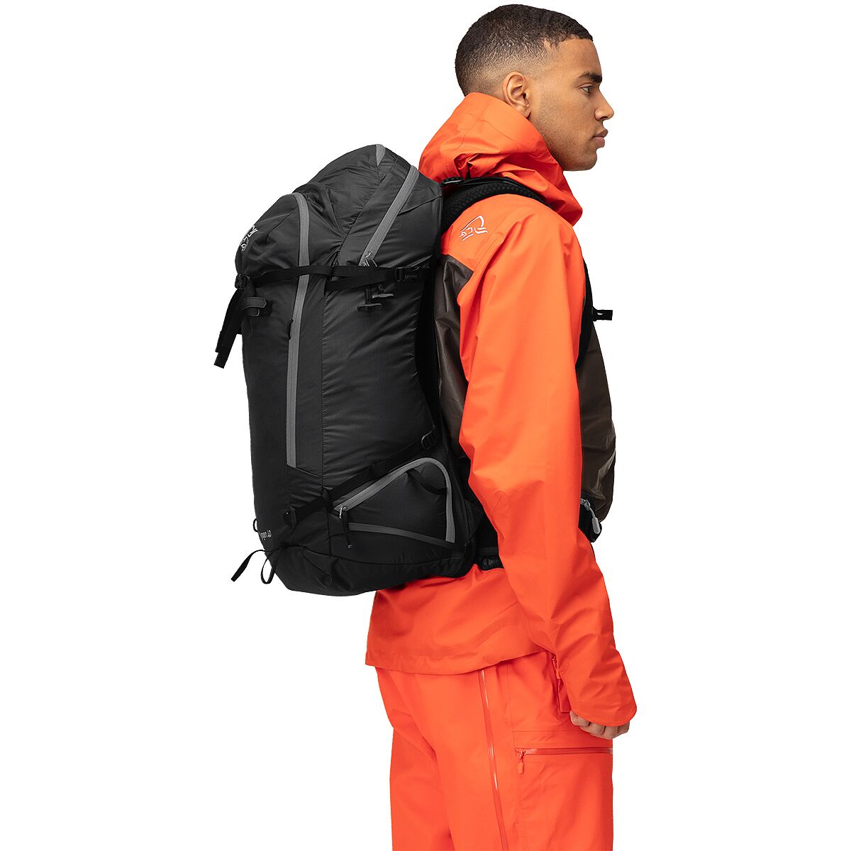 The pack has a big main compartment, spacious top compartment, a sectioned compartment for your avalanche equipment, and an easily accessible bottom compartment perfect for crampons and a rope. Its made for carrying both ski and snowboard, and you can decide whether to attach them to the side or front. You have easy access to the main compartment from a zippered entrance in the back, where you also find a dedicated hydration pocket connected with a sleeve down the carrying strap. In addition, there is an integrated helmet net that can be mounted on the front or underneath the pack, and the net is designed to prevent snow from getting inside your helmet.