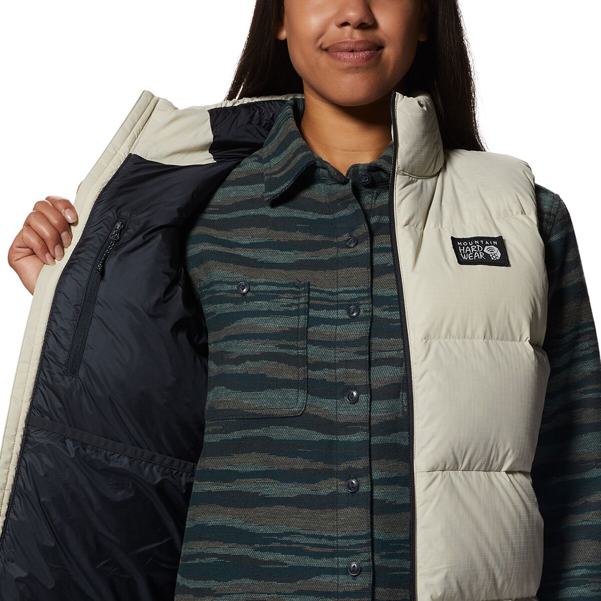 From chilly mornings at the farmer´s market to our campsite to Friday office casual, the Mountain Hardwear Nevadan Down Vest keeps our core warm while layering over our favorite flannels, sweaters, and turtlenecks. The down baffles wrap us in lightweight warmth while the vest features a variety of pockets—even two BYOB pockets in back to stash our favorite Sour or IPA for the fire pit, neighborhood BBQ, or tailgate party.
