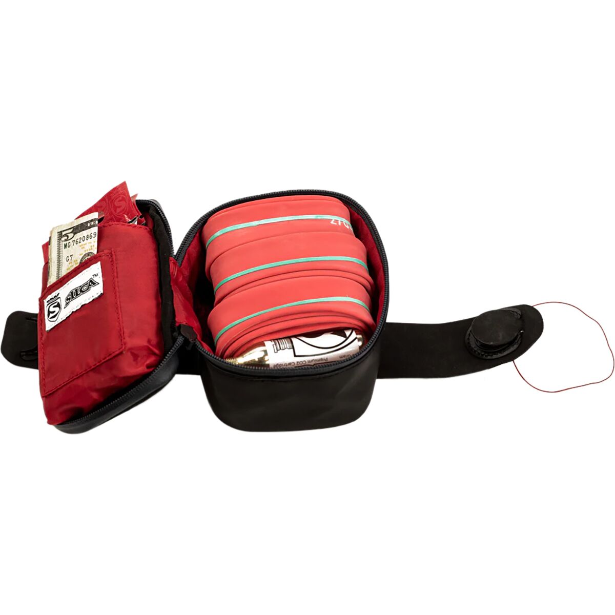 - Large capacity fits tubes, CO2 cartridges, tire levers, and tools
