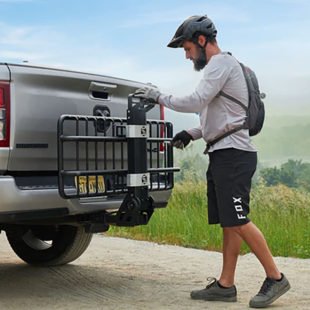 • Basket-style hitch rack accessory for gear storage