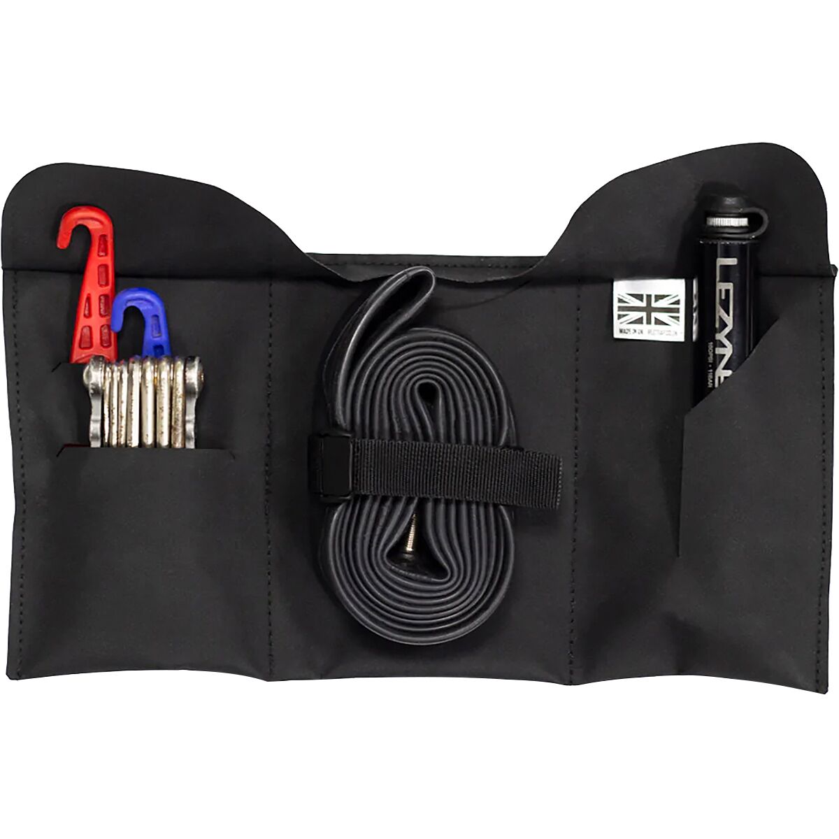 Dont let mechanicals spoil your ride. Carry your tools and spares with ease in the Restrap tool roll. Made from tough Hypalon, the roll contains four tool slots and an internal strap for any size tube. Spacious yet small, it accommodates a multitool, tyre levers, CO2 cartridges, as well as containing a spare pouch for chain links and other parts. Attach to your saddle rails with an easy-to-use strap, or slip inside your jersey pocket.