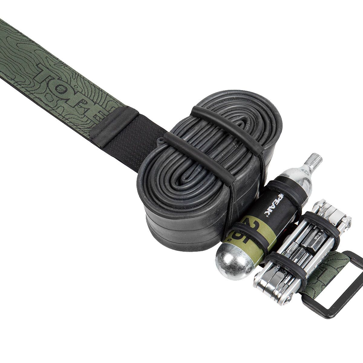 Topeak Elementa Strap Simply load your essentials with included straps and attach to saddle rails, seatpost, or downtube with hook and loop fastening strap. Included 2 detachable...
