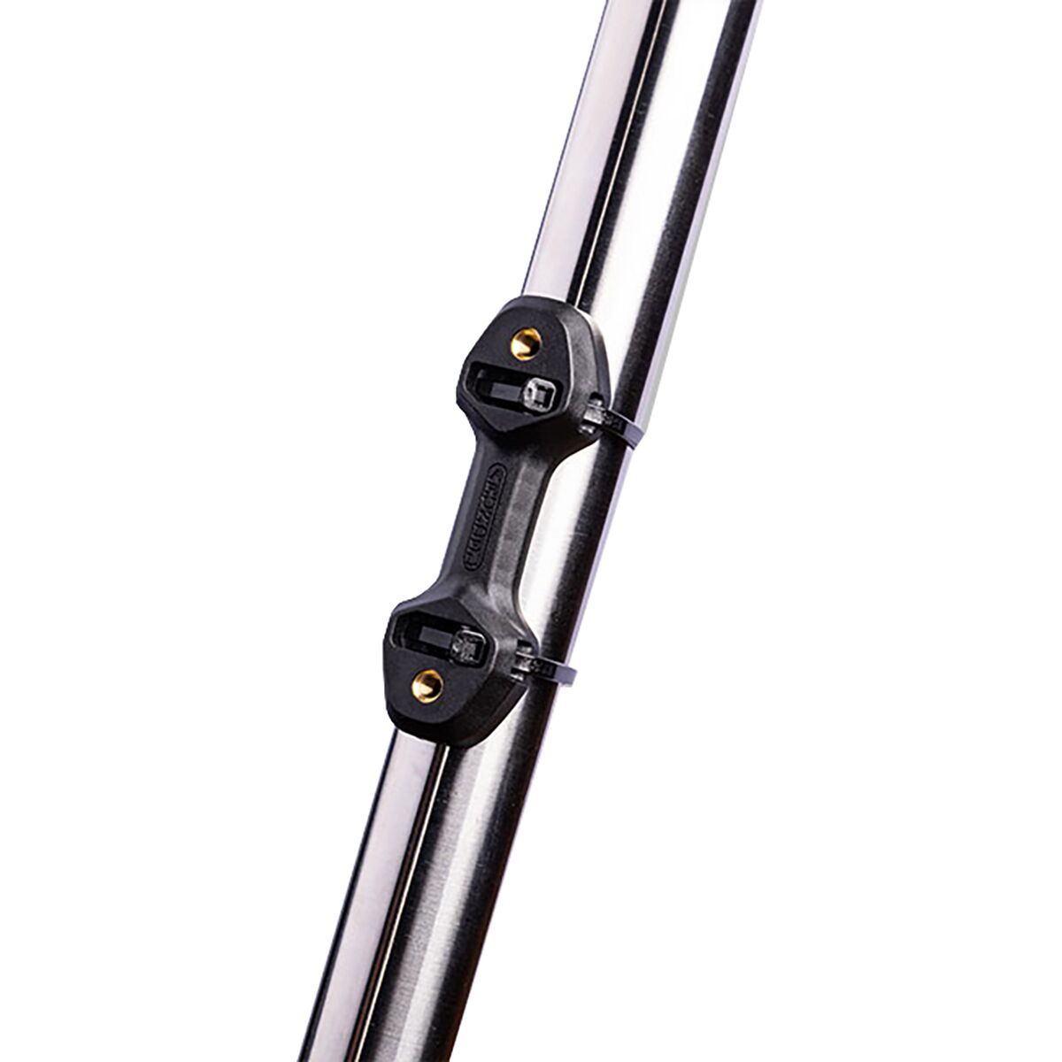 Arundel El Jefe Bottle Cage Adapter No bottle bosses? No problem. Clean the area, peel off backing, stick in place. Bottle cage covers head of zip tie for a clean look. Details...