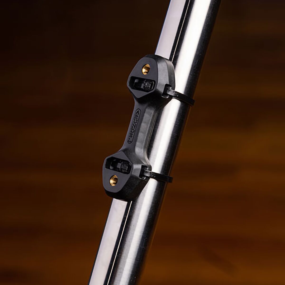 Bottle cage covers head of zip tie for a clean look.