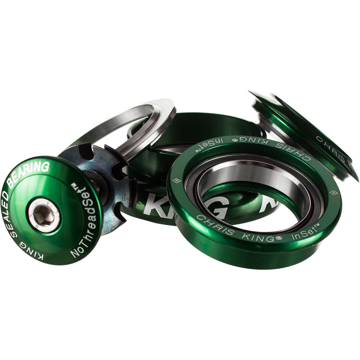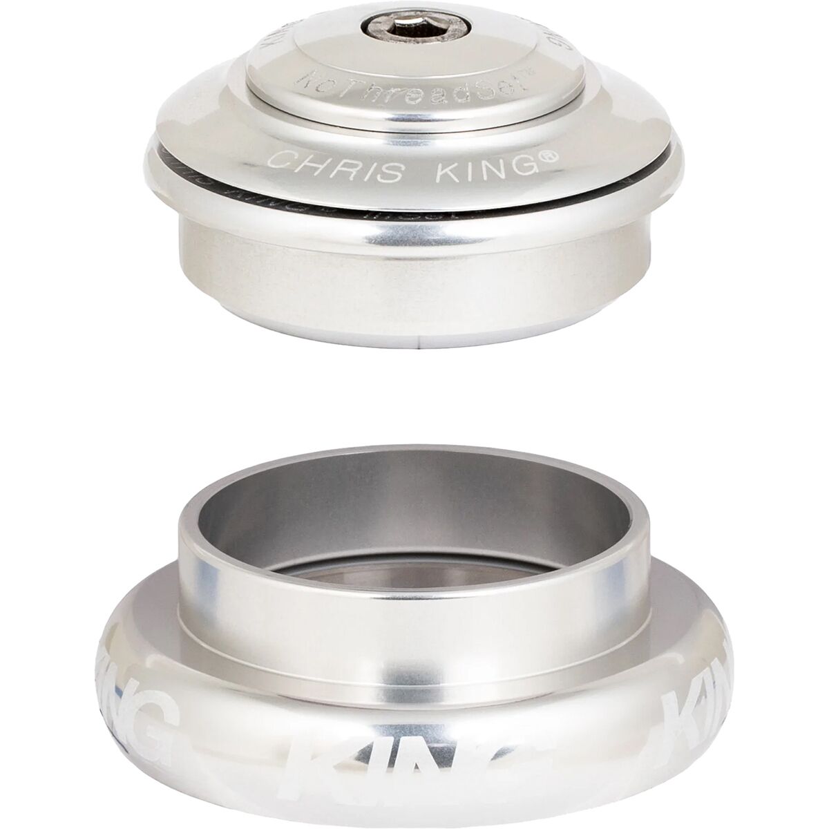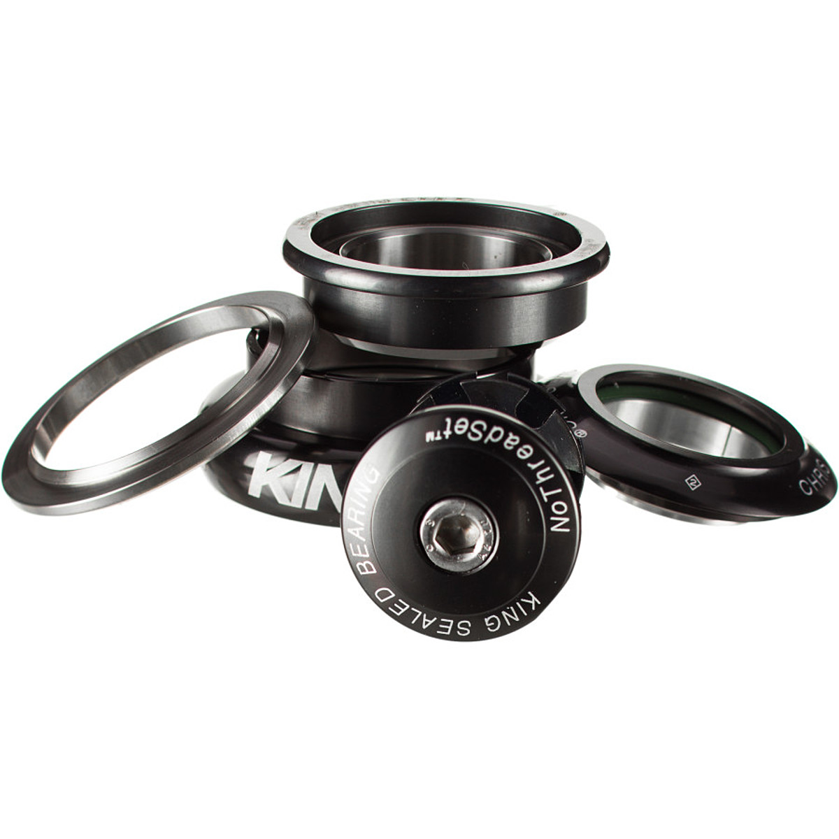 Chris King’s InSet Headset series is designed for very specific applications, which is why you’ll find numbers 1 through 8 attached to each one. The InSet 7 seen here includes a 44mm internal, zero stack upper cup paired with a 44mm external lower cup. This means that if you have a straight, 44mm head tube, and a fork with a 1.5 to 1.125in tapered steerer tube, this is the Chris King product for you.
