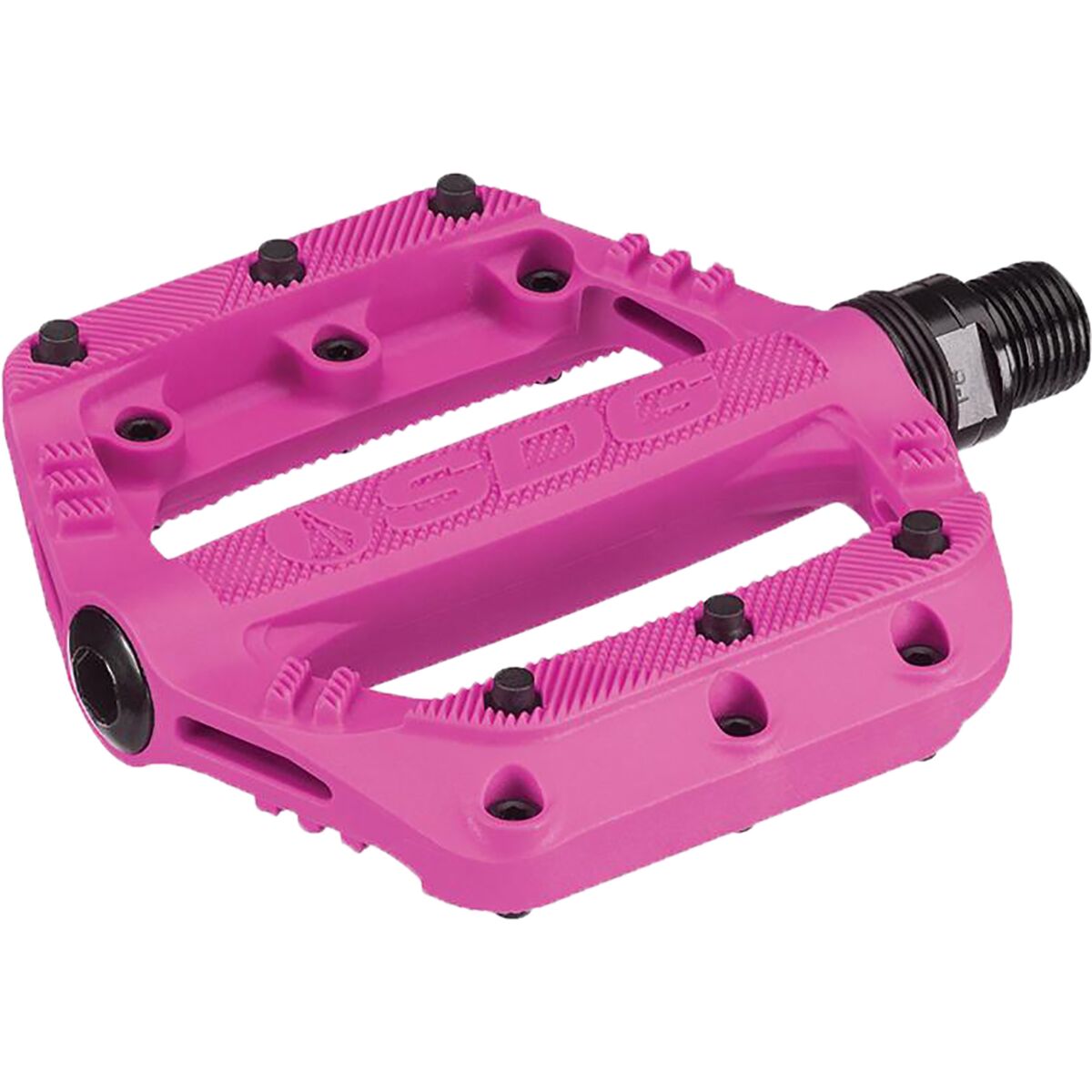 Small-footed people rejoice because the Slater Pedals are perfectly suited for you. The 90mm by 90mmm pedal is smaller in a good way with a ruggedness that can´t be beaten. SDG Components manufactured this pedal with a high-end nylon composite body pedal, unlike normal PP plastic, which we love because it extends the lifespan of the pedal and allows it to withstand more wear and tear. For maximized grip, the Slater Pedals offer replaceable lower profile pins, which help reduce the risk of scrapes and bruises on your ride.
