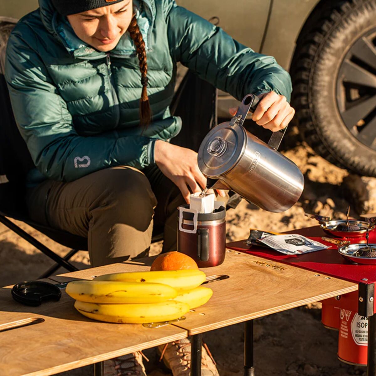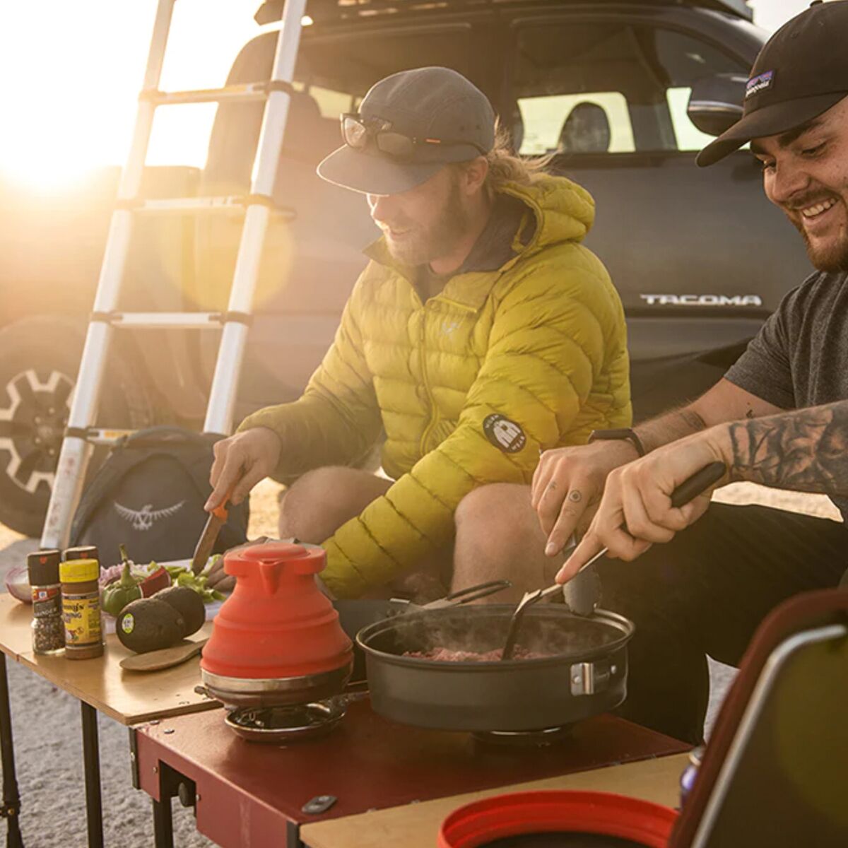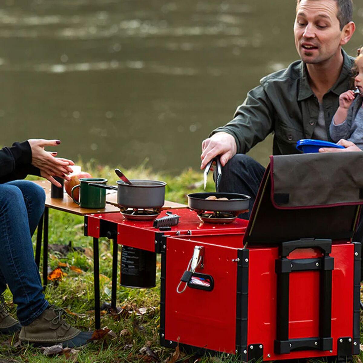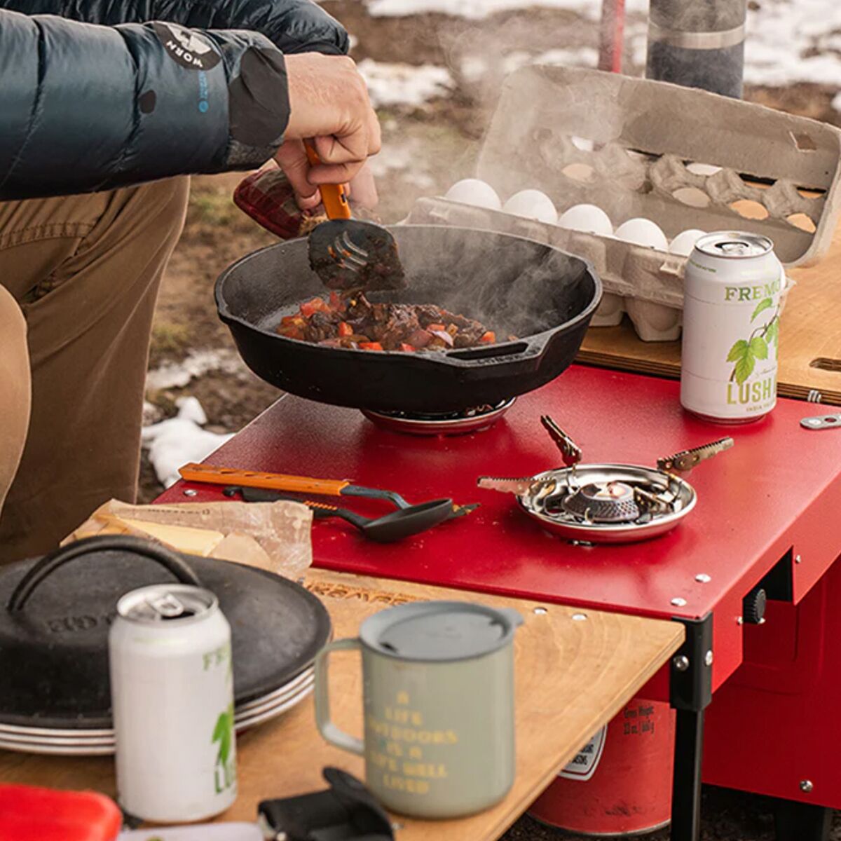 The iKamper Aioks All In One Kitchen System makes camp meals as simple as can be. With two burners ready to go and a table that folds out to seat up to four people, mealtime has never been so easy. The rolling storage container allows us to bring our kitchen nearly anywhere, so we can enjoy hot, fresh food wherever the best view is.