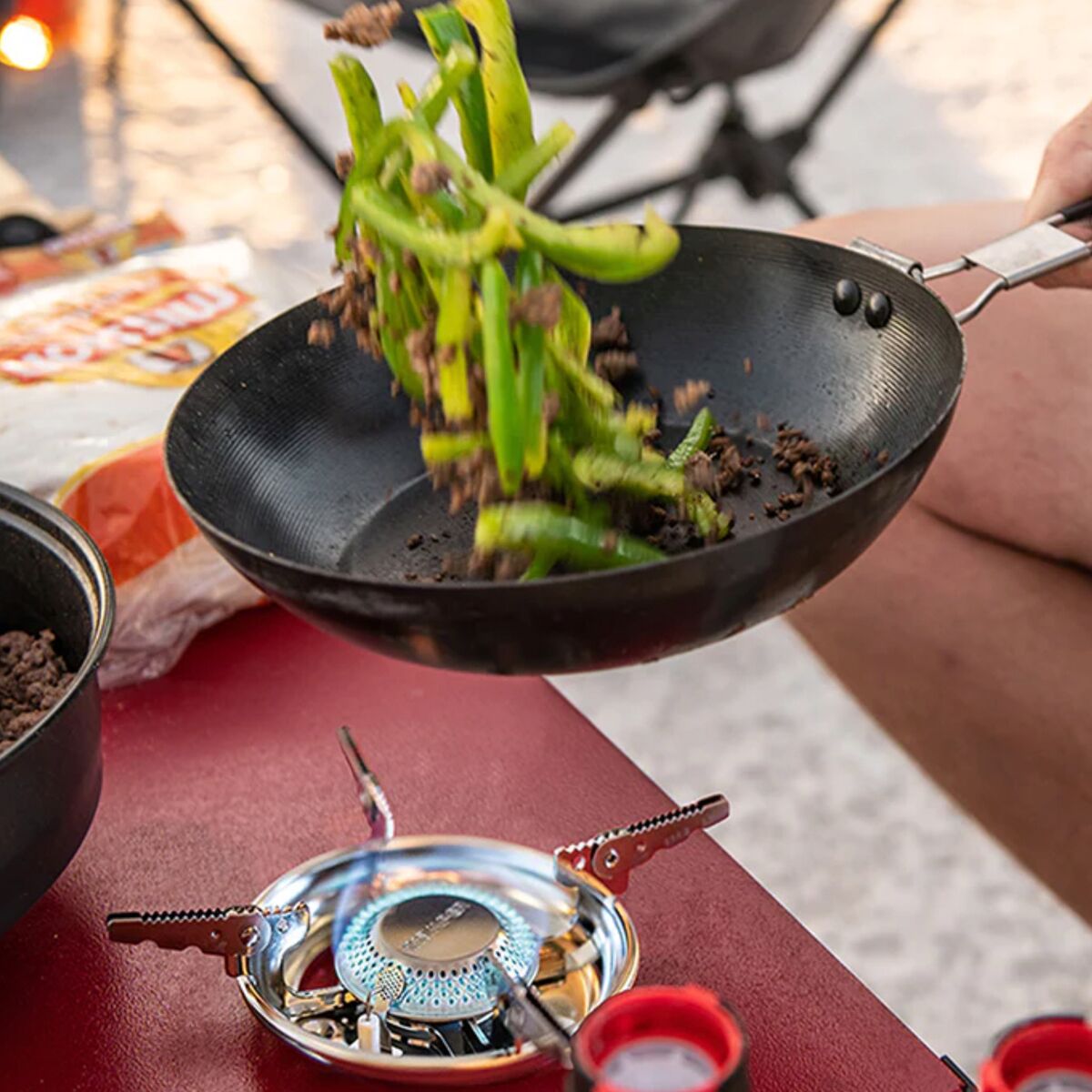 - rolling storage, 2-burner stove, folding table