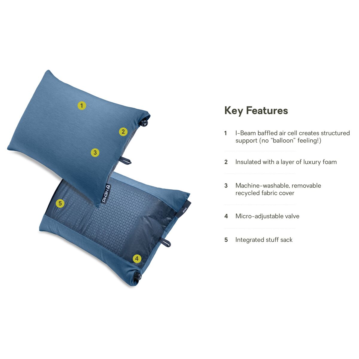 • Backpacking and camping pillow designed for exceptional comfort on the go