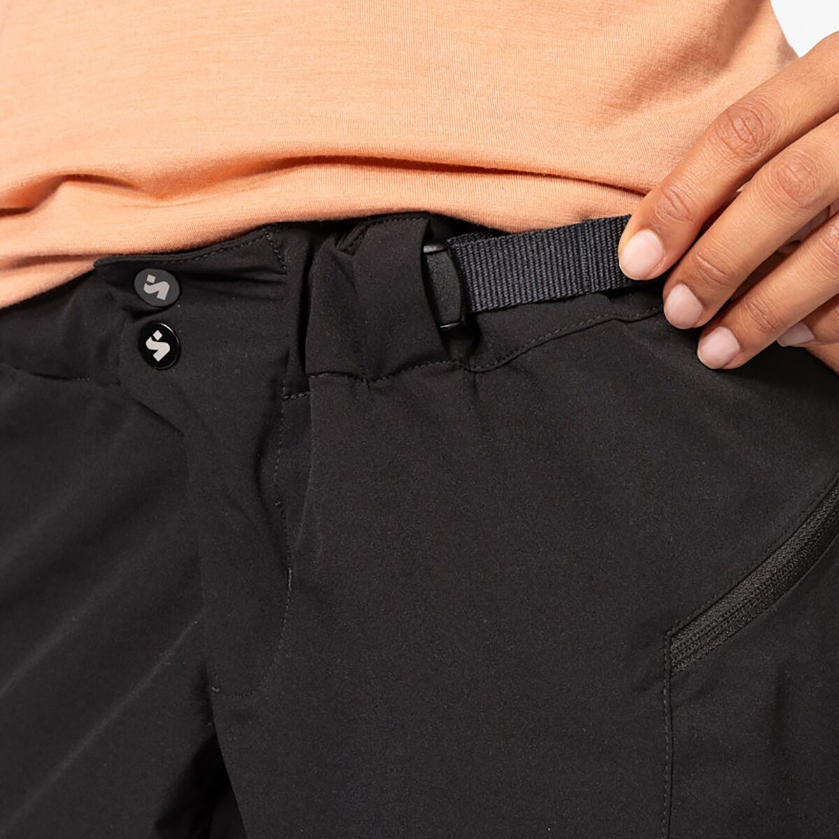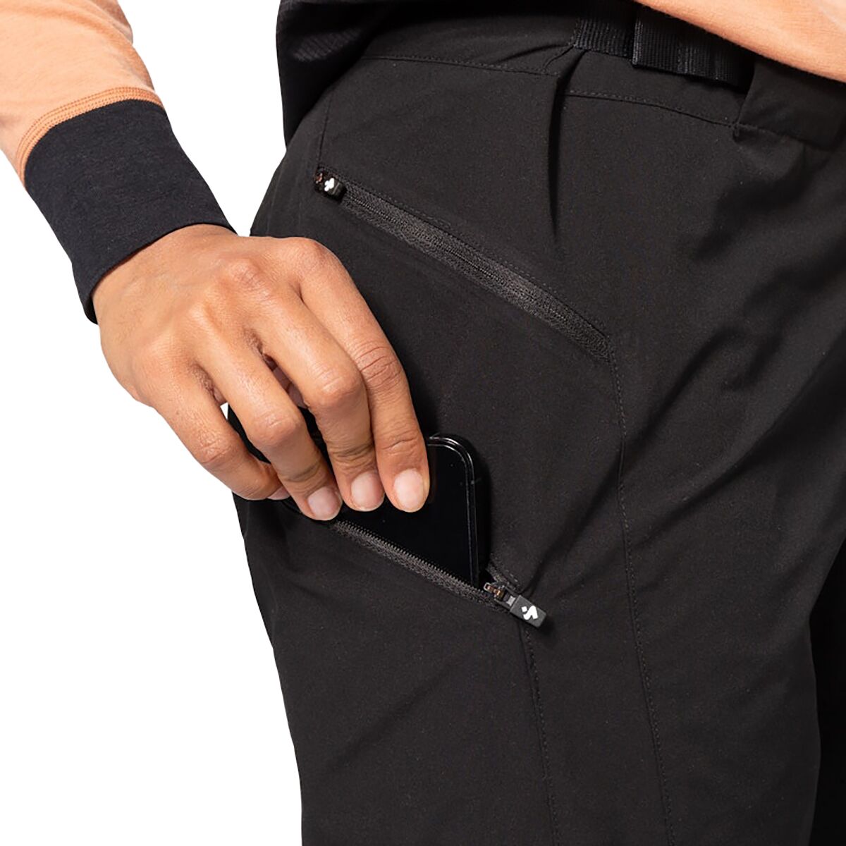 - Zippered thigh pocket with internal phone sleeve for secure storage