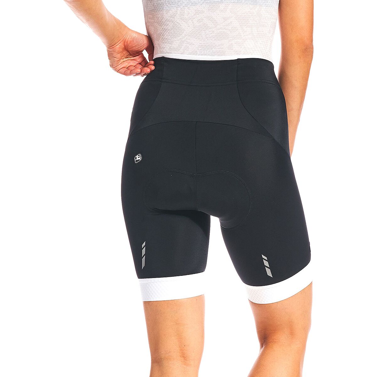 The shorts are constructed from 2 panels of stretchy and breathable fabric that provides a contoured fit supporting cycling muscle groups while you pedal, reducing fatigue, and moves hot perspiration away from your skin. The fit is classic Giordana and you´ll be in total comfort as the cut is non-restrictive while still offering compression and support for the long miles ahead. Leg cuffs are constructed from 4.5cm non-restrictive, soft, woven elastic that comfortably keeps the hems in place. Topping these shorts off is the Cirro S-W chamois providing a plush, cushioned barrier between you and the saddle with its breathable foam and soothing aloe vera impregnation. Reflective rear striping along each leg allows for brilliant visibility in low-light conditions.