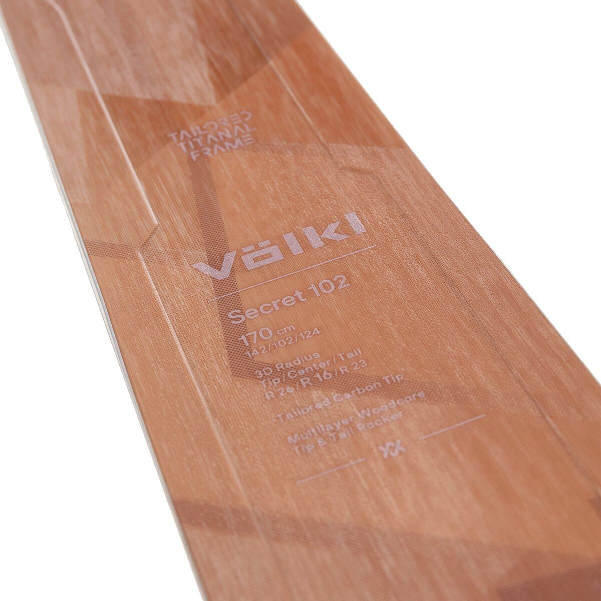 The Volkl Secret 102 Ski is engineered for skiers who demand power and versatility across the entire mountain, regardless of conditions. With a 102mm waist the ski is perfect for floating through powder, while maintaining quick maneuverability for tight turns through the trees. The tip and tail rocker provide forgiveness in variable conditions, while the titanal-reinforced flex delivers confidence and stability as we blaze down windswept groomers. The damp wood core and tailored carbon tips absorb vibrations to keep our ride smooth, allowing us to carve hard on the hardpack and slice through powder.