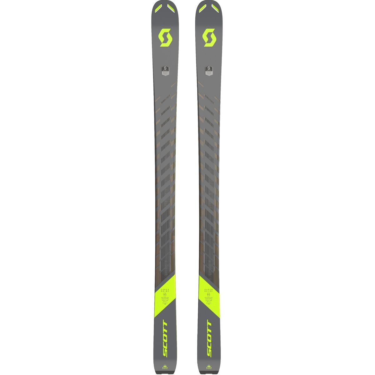 Having a lightweight ski is essential when we´re aiming to knock out long tours, but flailing our way down the descent isn´t any fun, so we need to balance climbing ability and skiing chops. The Scott Superguide 95 Ski pulls off this delicate balancing act by using Scott´s elliptical sandwich sidewall construction, which combines traditional near-vertical sidewalls with a rounded construction to balance edge hold, stability, and weight. The core is made of wood, but Scott laid it up with layers of carbon and aramid to add stiffness without bringing extra ounces along for the ride.
