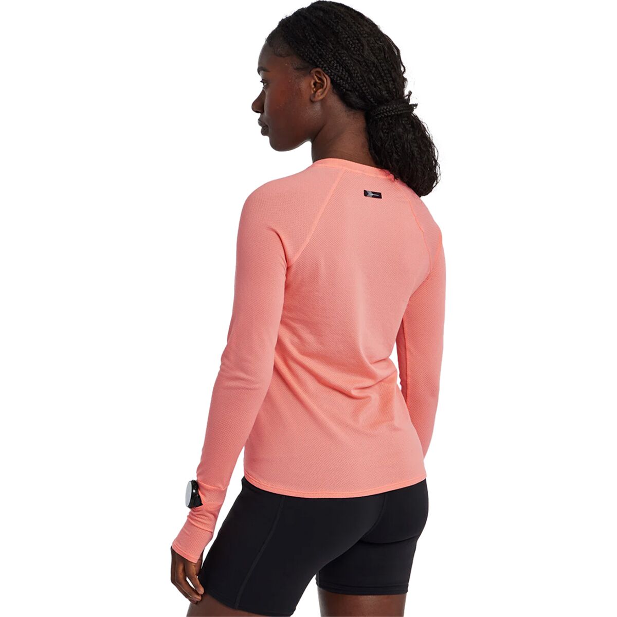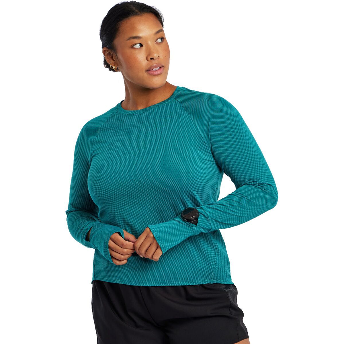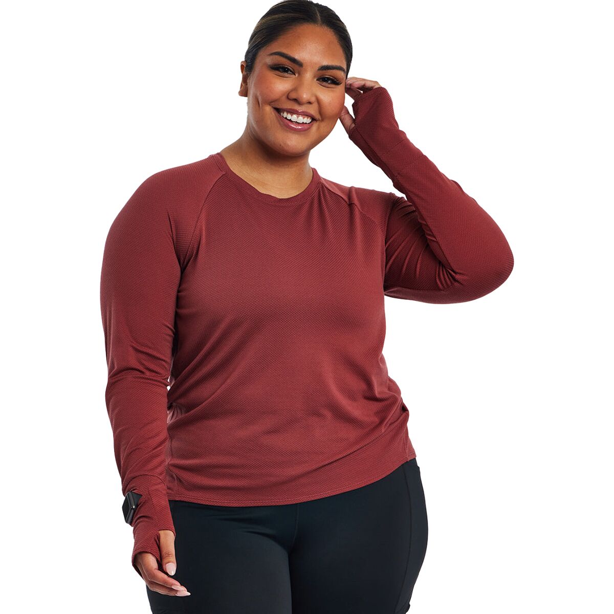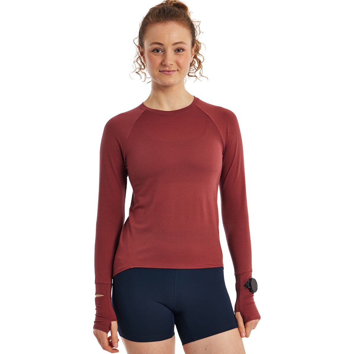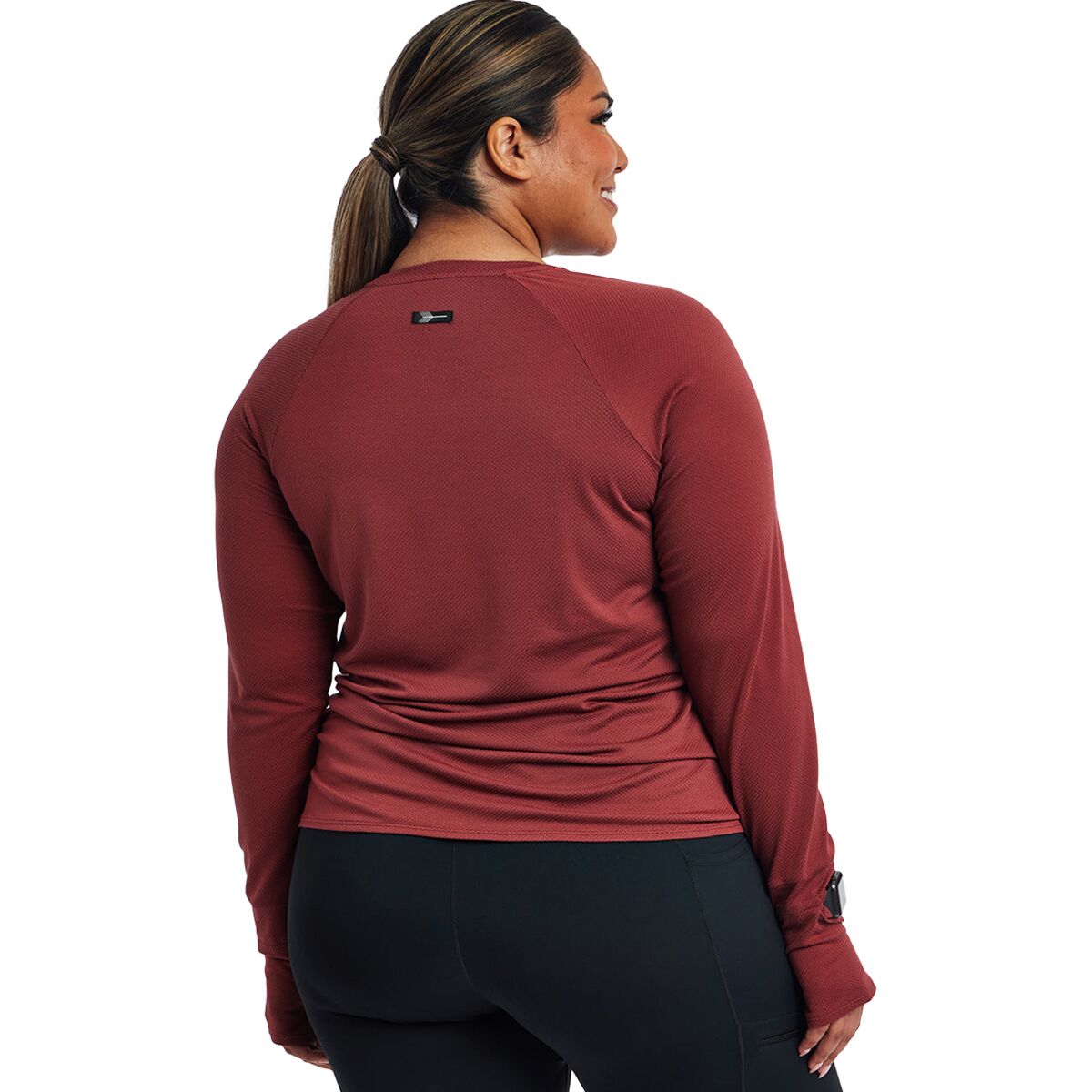 Whether we are training or just getting things done around the house, the Oiselle Flyout Long-Sleeve Top is the perfect top to do it in. Made with HoverFit fabric, a lightweight, stretchy, and moisture-wicking fabric, the Flyout Long-Sleeve Top is super comfortable, soft and performance-oriented. The thumbholes help to keep our sleeves in place, and the watch cutout allows us to check our workout stats without pulling up our sleeves.