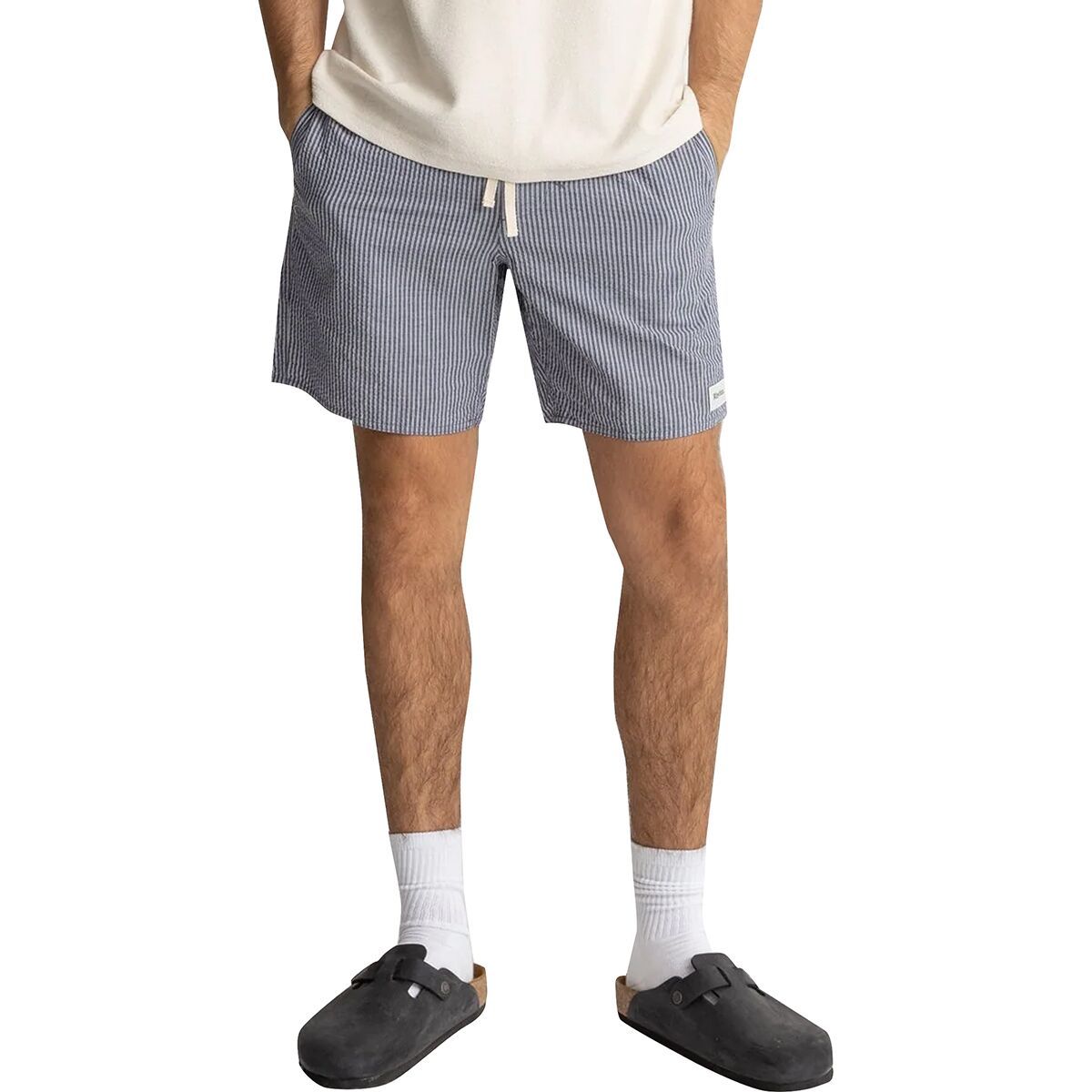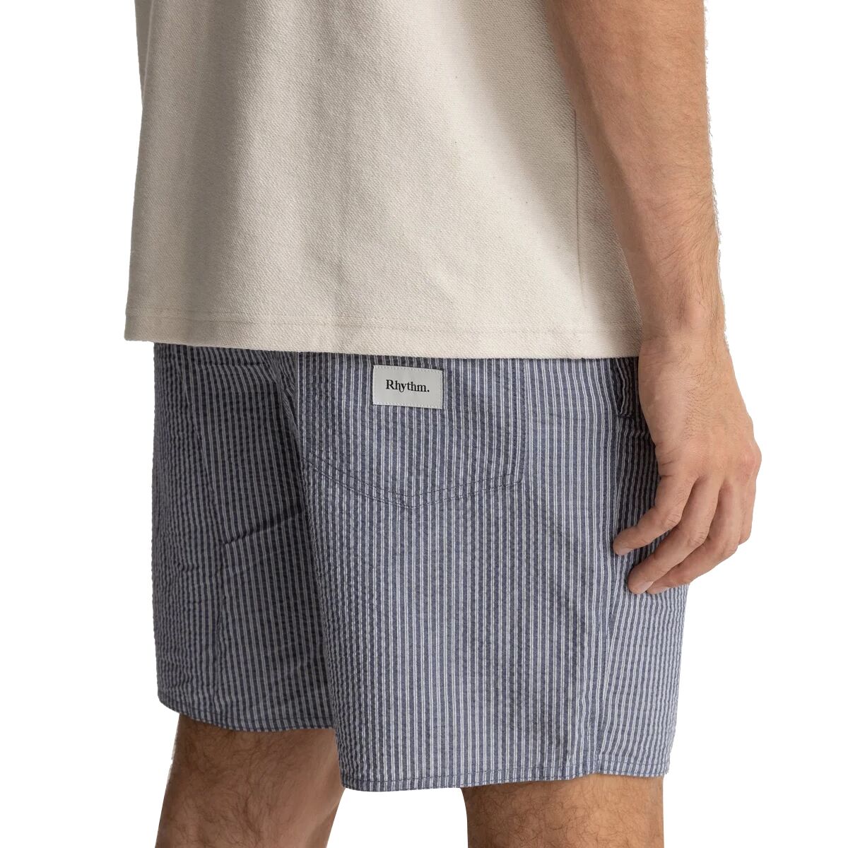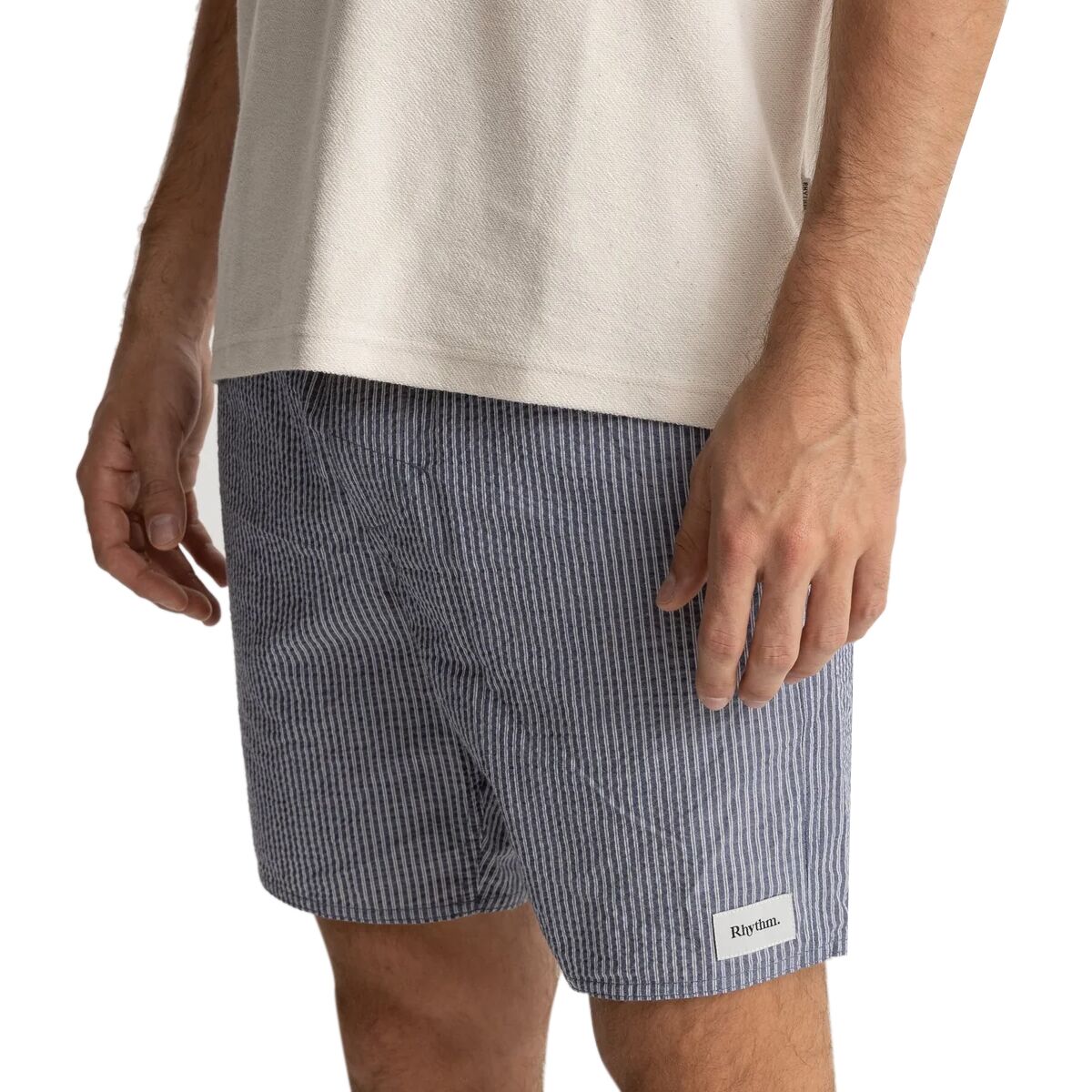 Rhythm Seersucker Stripe Jam Short Details Item #RHYC0IZ Tech Specs Material100% cotton seersucker Fitregular Lengthmid-thigh Pockets2 hand, back patch Waistdrawstring
