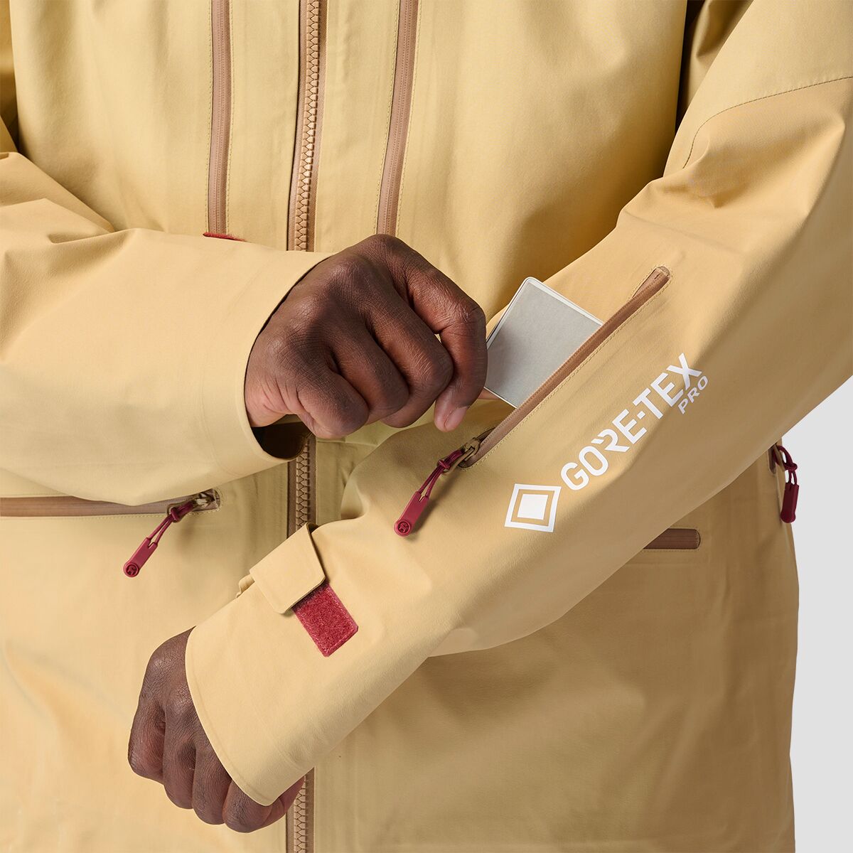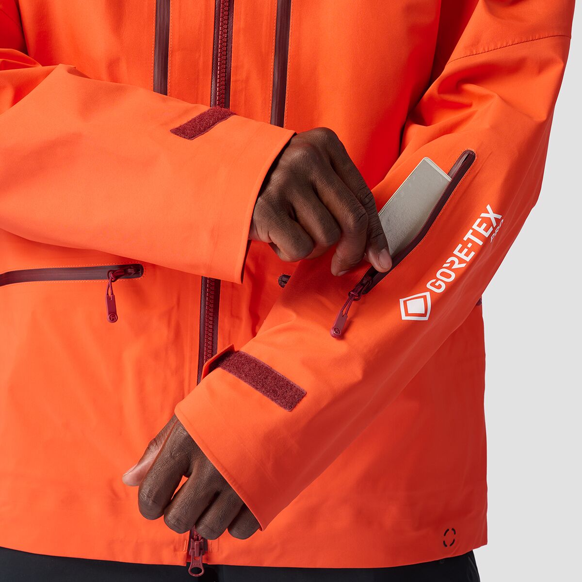 With updates to the GORE-TEX PRO membrane, we followed suit, recrafting the Backcountry Cardiac GORE-TEX PRO Jacket to keep it stretchy, durable, and touring-ready. Cutting-edge GORE-TEX PRO waterproof tech and multi-denier nylon keep this pinnacle jacket lightweight and breathable while providing the protection we need while chasing pow and summiting peaks. The helmet-compatible hood keeps us shielded from the storm, and underarm zippers dump heat fast on high-effort ascents. New pocket construction and an updated center zip improve usability, offering us access to our belongings without ditching the gloves.