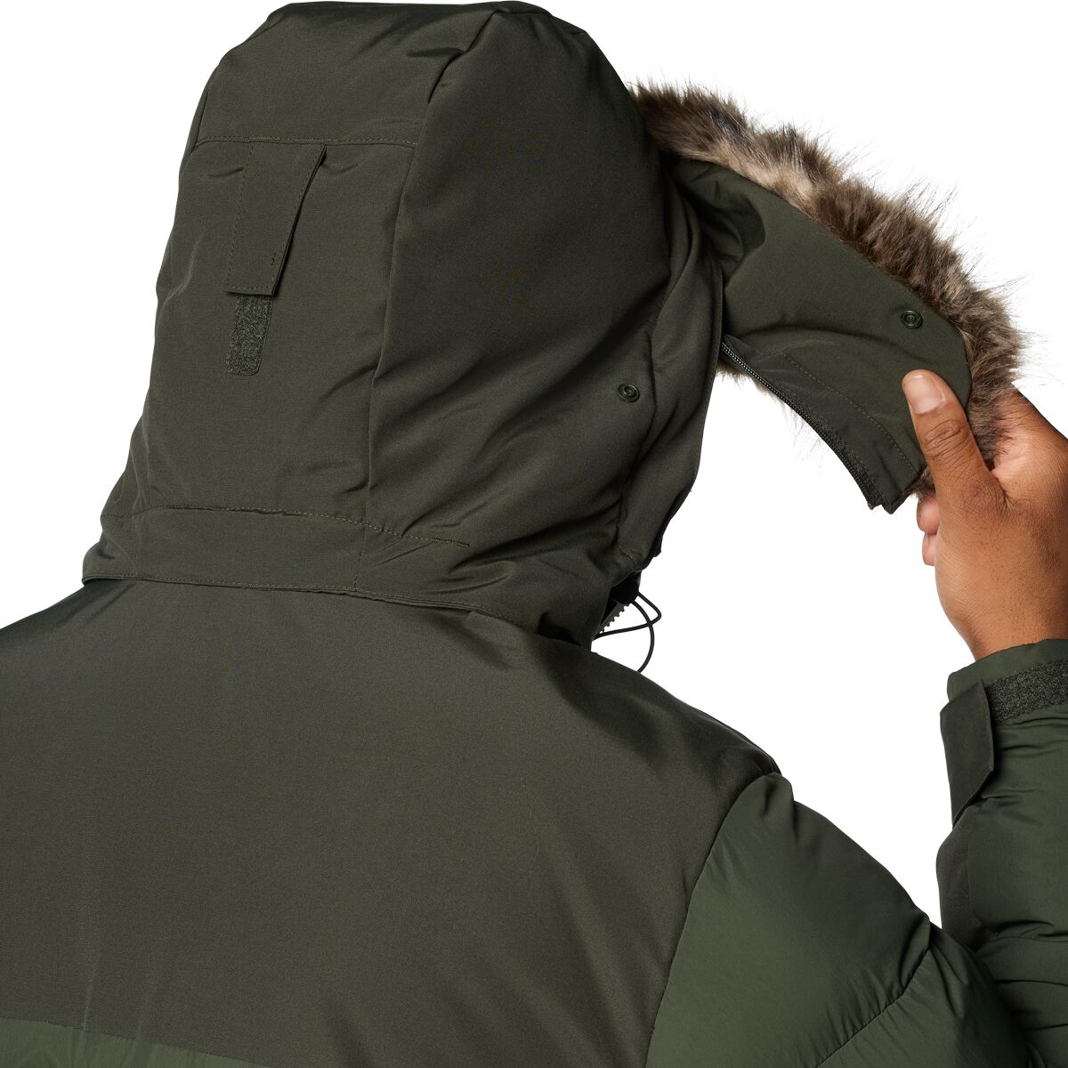 • Removable, adjustable hood with optional faux fur trim for versatile style