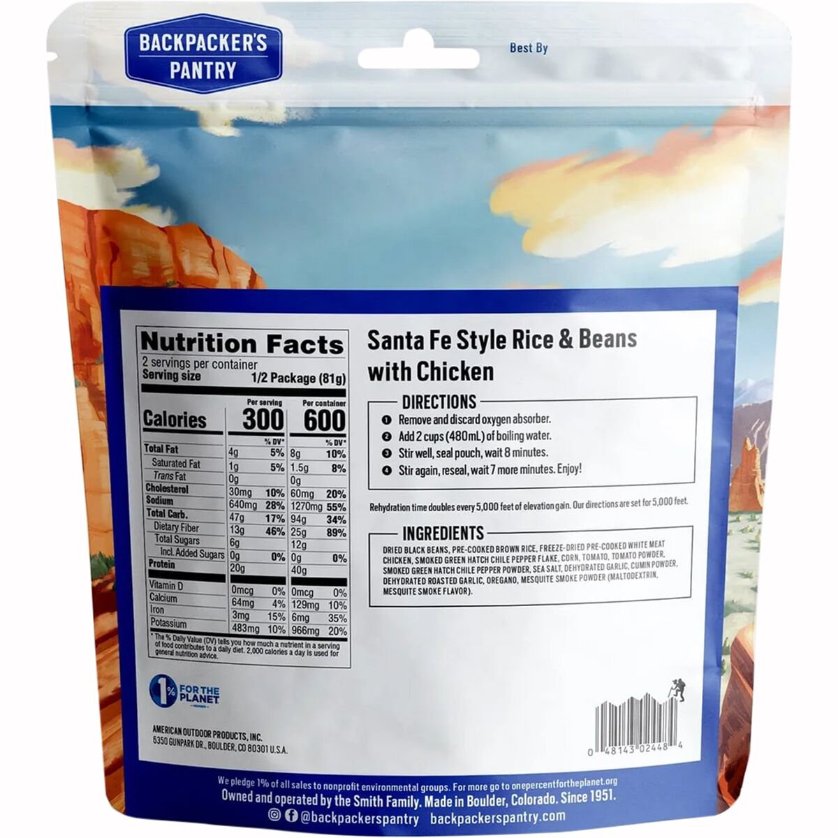 Backpacker´s Pantry Santa Fe Rice & Beans with Chicken This savory favorite tosses a colorful blend of black beans, brown rice, chicken, hatch green chile pepper, sweet corn,...
