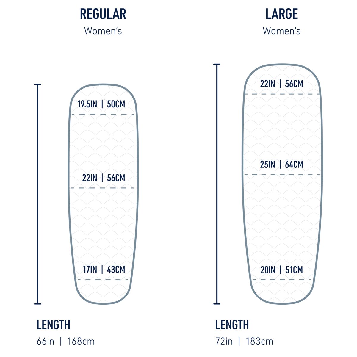 [regular] 66 x 21.5in, [large] 72 x 25in