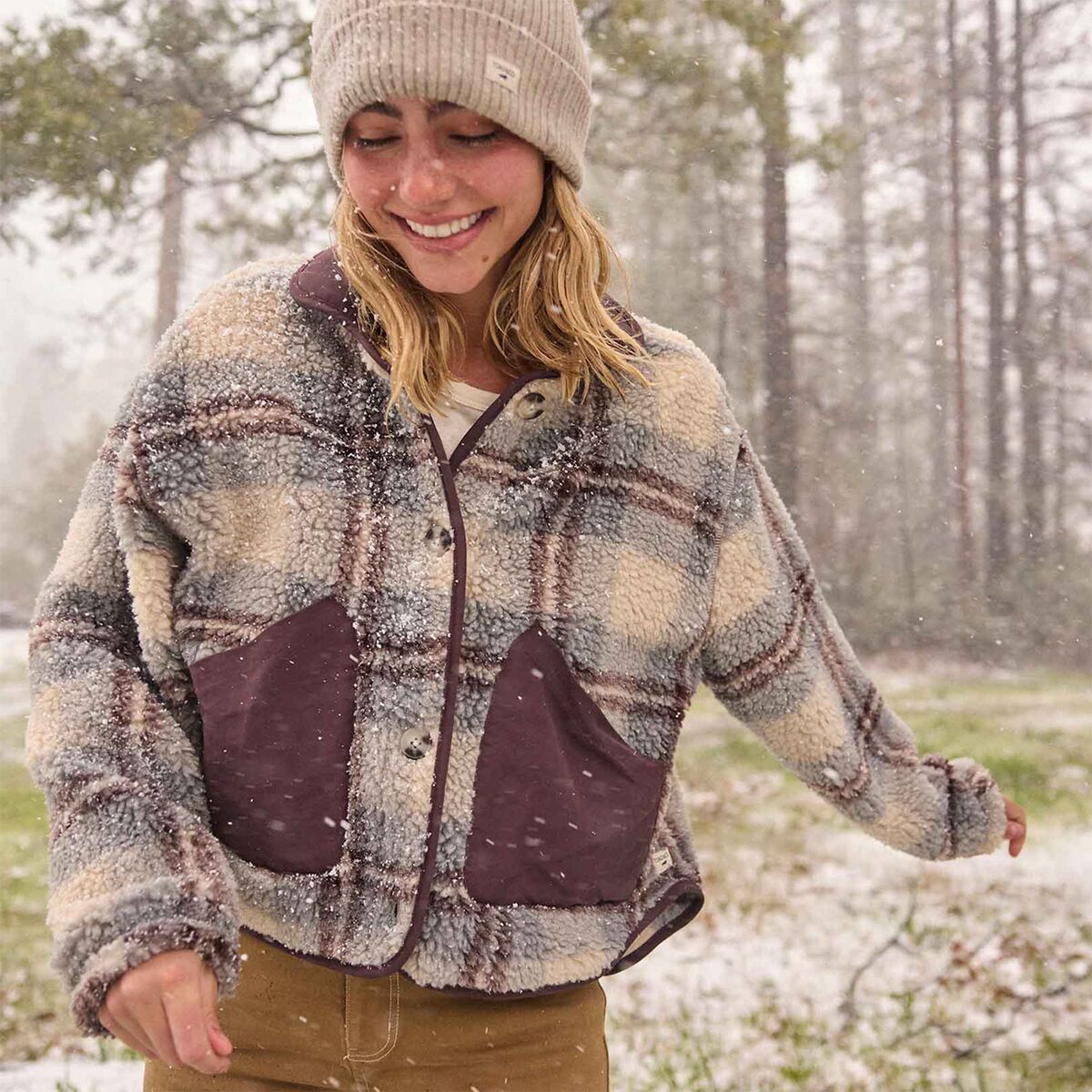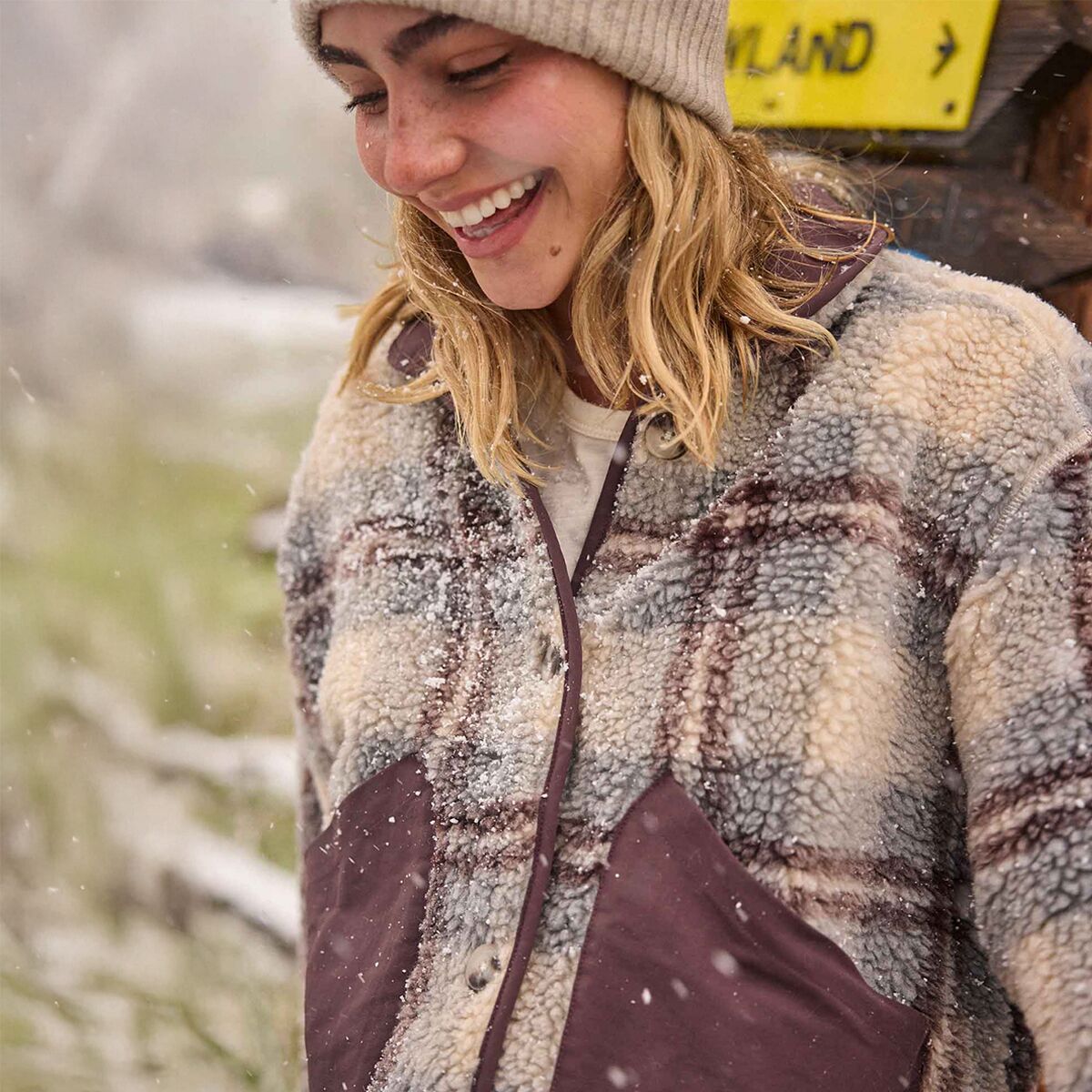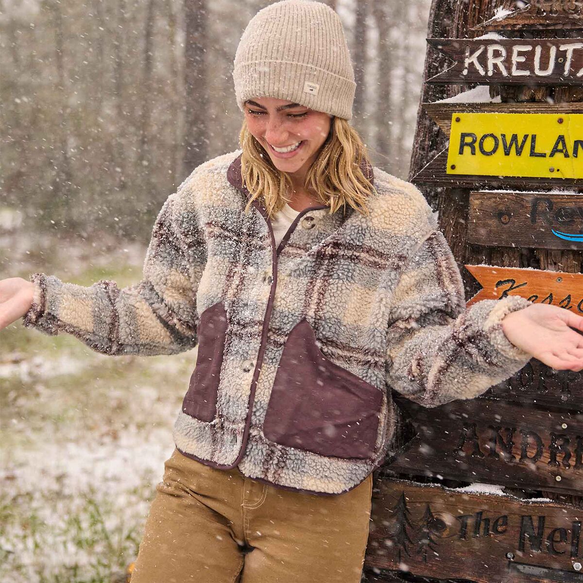 • Recycled wool, polyester, and nylon create a cozy feel