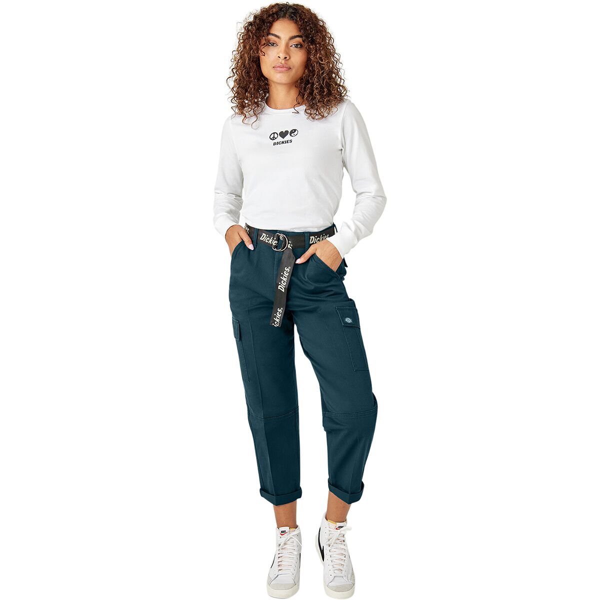 The Dickies Relaxed Fit Cropped Cargo Pant strikes the perfect balance between skate-inspired streetwear and heritage workwear for a new take on a modern classic. The cotton blend has a slight amount of stretch, so whether we´re skating with our friends or strutting down the street, we stay comfortable all day. The patch cargo pockets are both stylish and functional, storing everything we need for life on the go. The contoured waistband and included belt secure a perfect fit, and the high-rise waist and cropped legs give us a casual look.