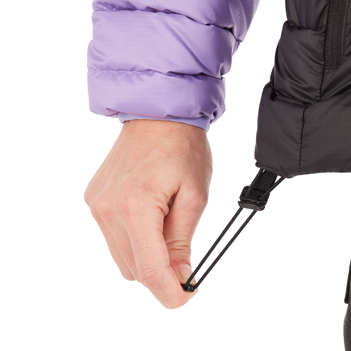 • Fixed hood with elastic cuff protects your face from the cold