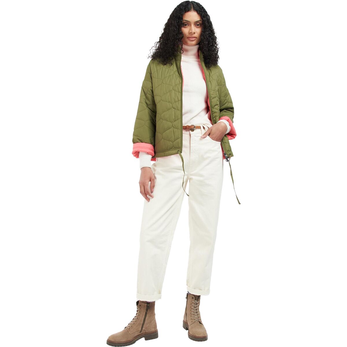 Why We Like The Barbour Reversible Apia Quilt Jacket The Reversible Apia Quilt Jacket features a green quilted fabric on one side and a smooth pop of pink on the other, giving us...
