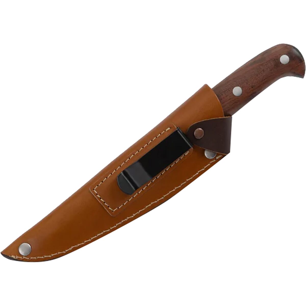 - Included full-grain leather sheath with belt clip for safe storage