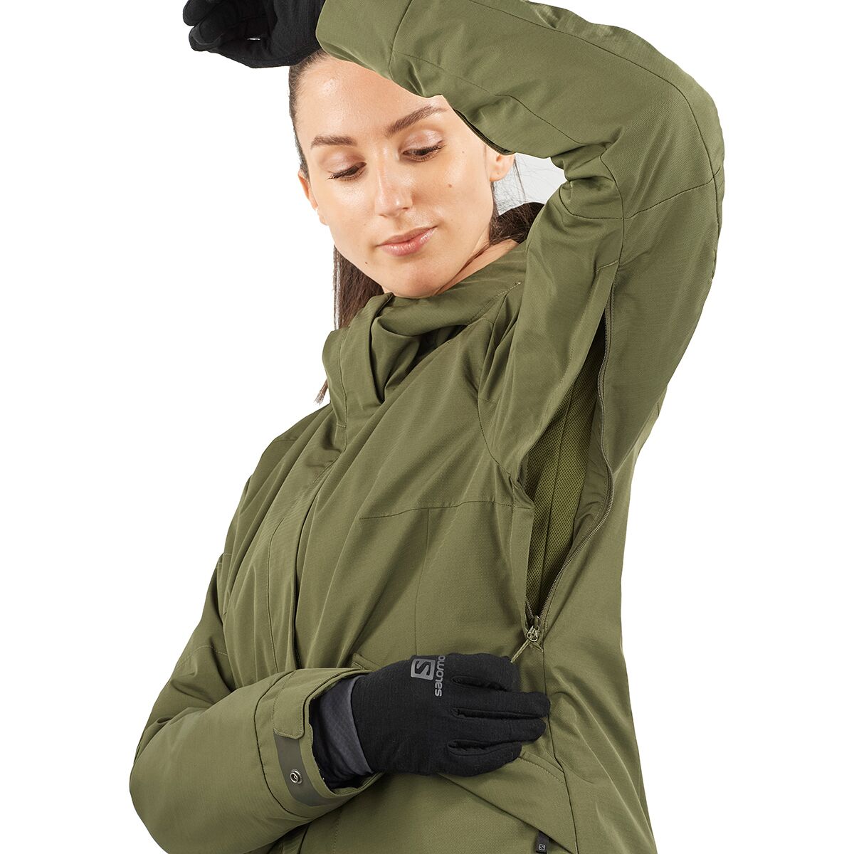 - Waterproof, breathable membrane defends against moderate snow
