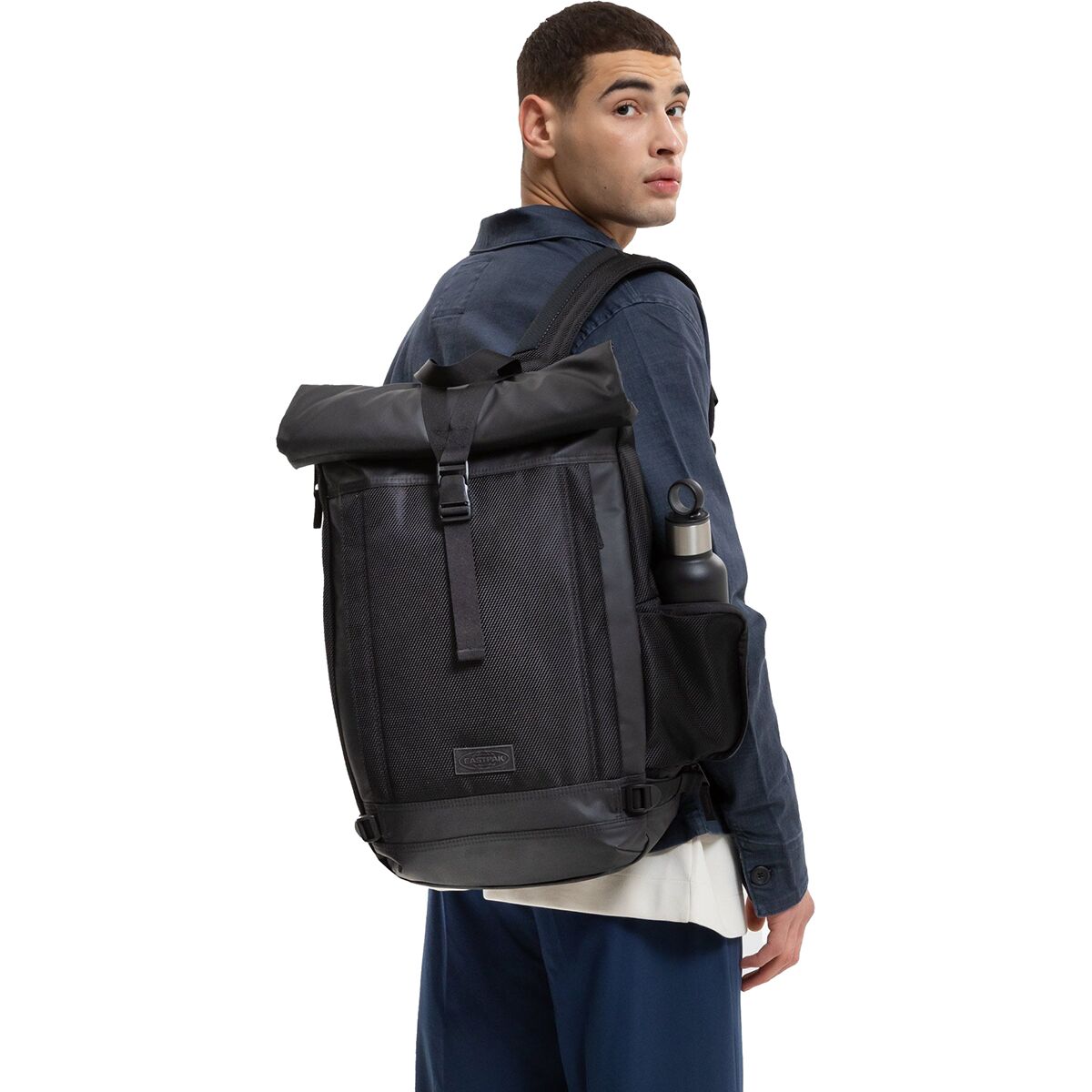 "This bag is ideal for city commutes and daily adventures. The roll-top opening adds a sleek look and expands storage, while the padded laptop sleeve and bottle holder keep essentials secure and organized. I also love that it’s completely vegan."