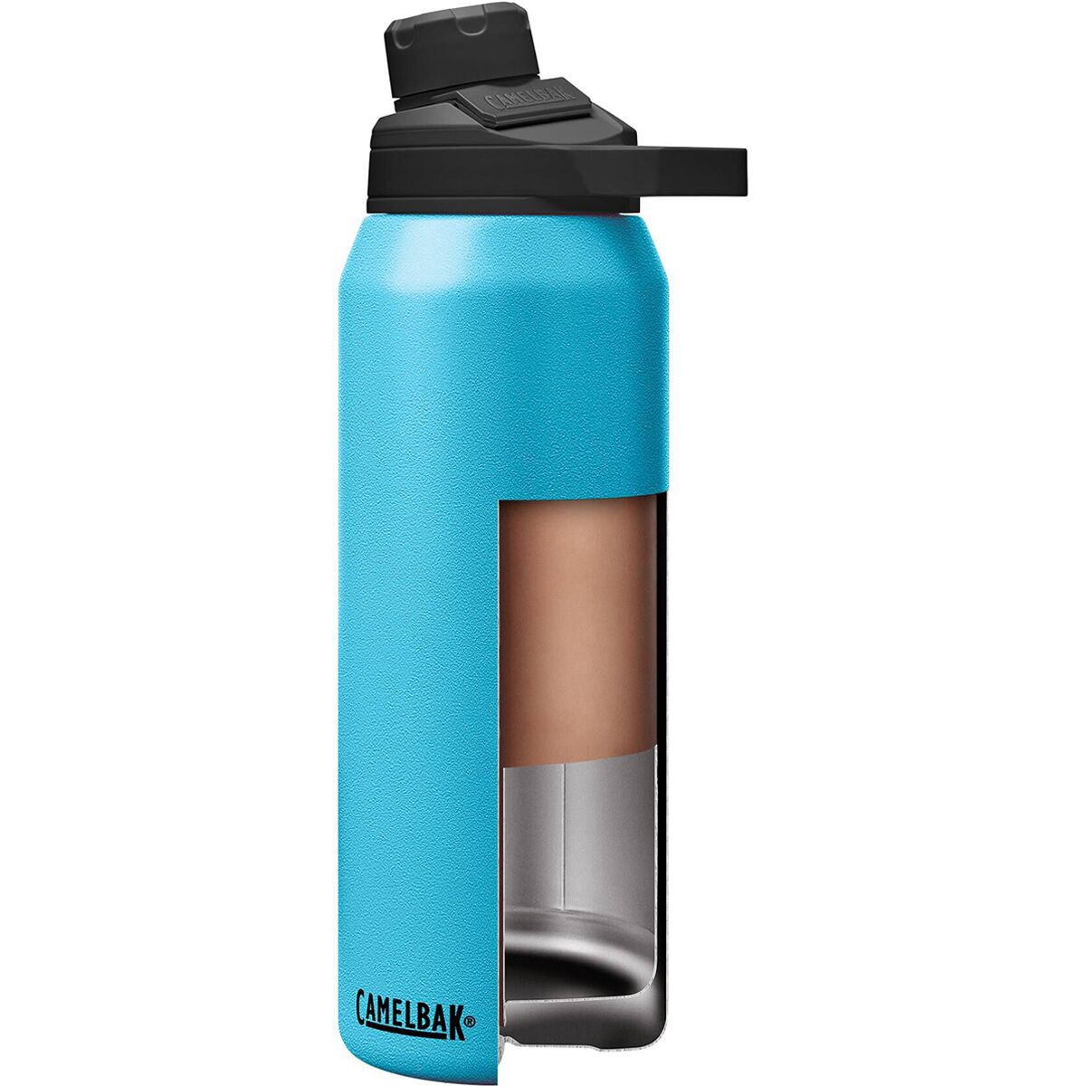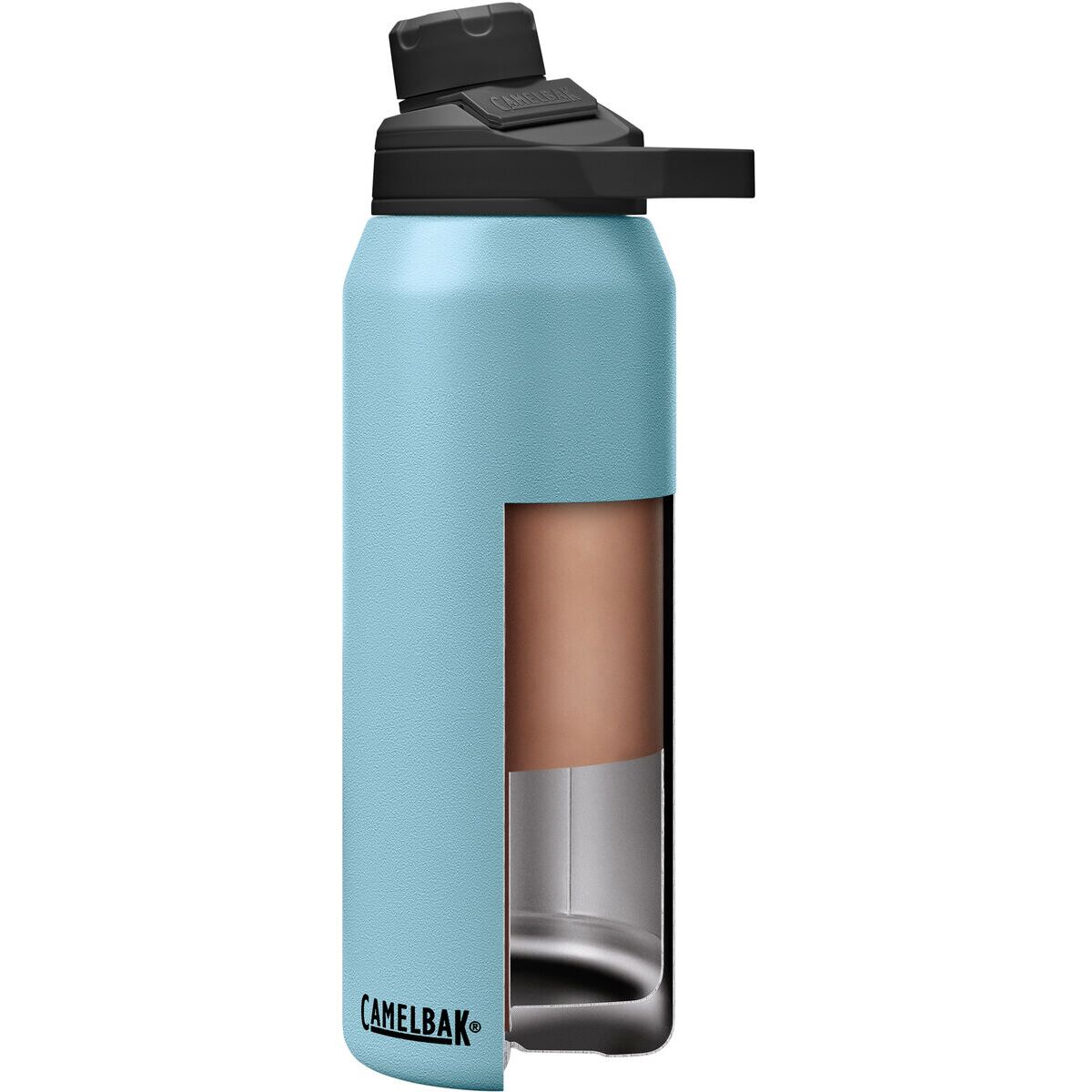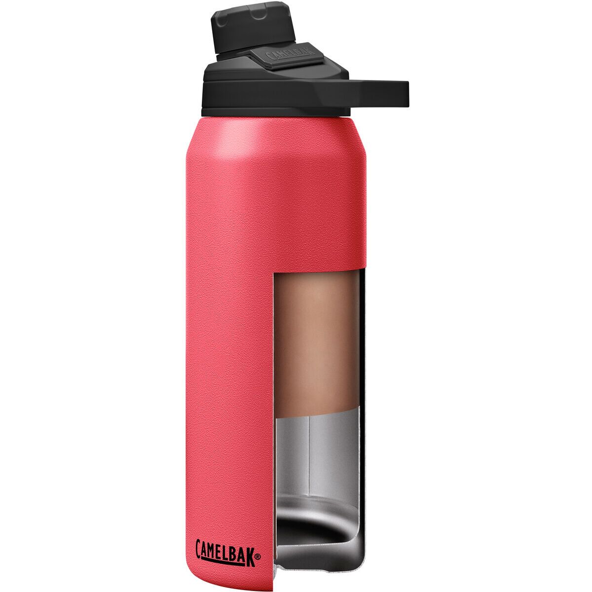 CamelBak delivers the ingeniously designed Vacuum Chute Mag 32oz Bottle that´s constructed from stainless steel and is vacuumed insulated. With its unique construction and insulation, it will keep cold beverages chilly for up to 24 hours, perfect for sipping on a hot summer day. The wide mouth opening makes filling the bottle with ice and cleaning after use and easy affair. It´s great for keeping hot beverages warm too. You can enjoy a hot cup of coffee or tea for up to six hours. The angled high-flow spout pours beverages quickly and spill-free. And if you´re coming back to the trailhead parched from a grueling hike or bike ride and need quick chugging salvation, the cap is removable and the threads are internal for drinking pleasure. What makes the Mag model unique versus other bottles is the magnetic handle used to hold the cap out of the way while you drink. This bottle is available in 8 powdercoated colors and is dishwasher safe.