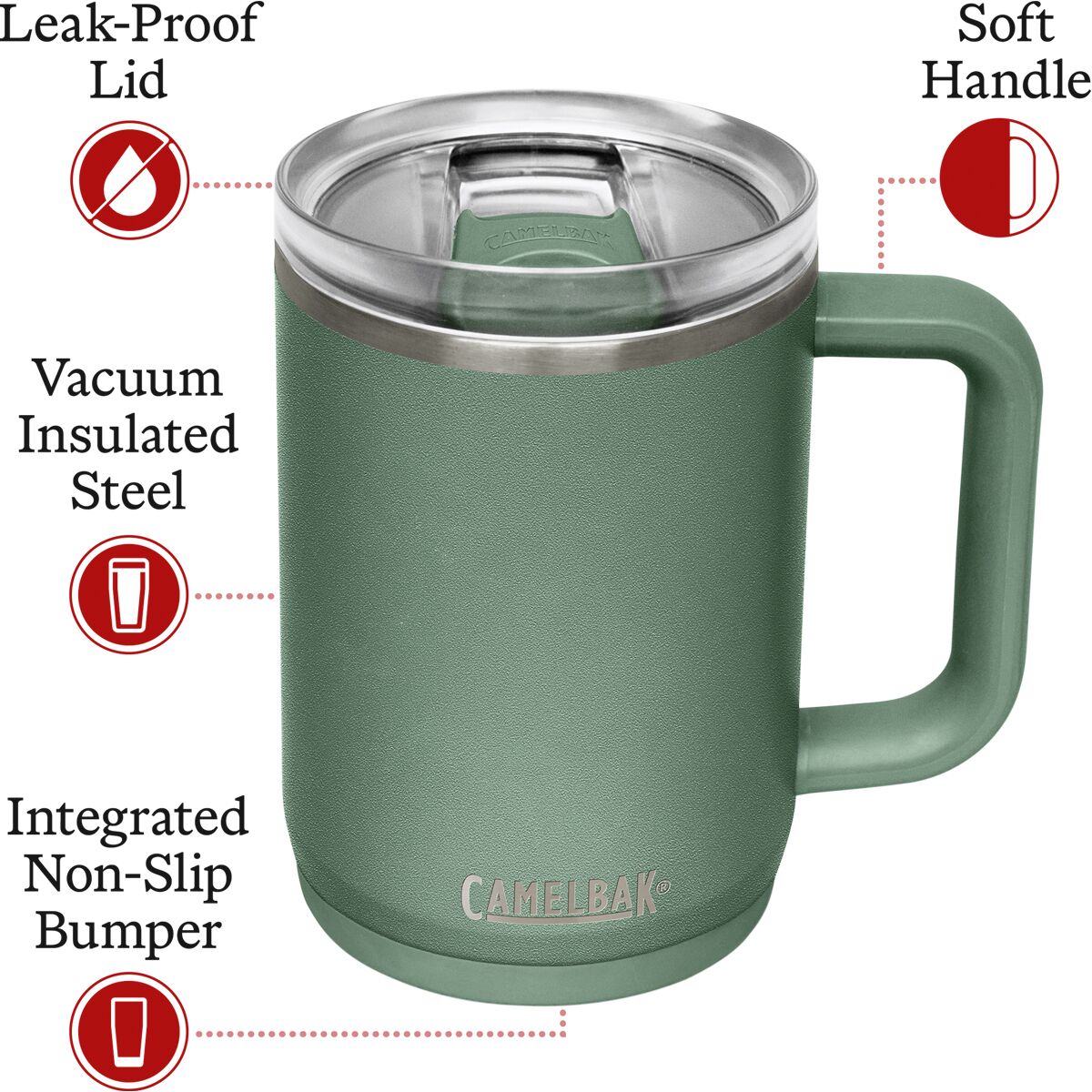 CamelBak Thrive Mug Details Item #CAMQ37V Tech Specs Material18/8 stainless steel Volume16oz Insulatedyes Sealableleakproof Tritan thread-on lid Manufacturer Warrantylimited...