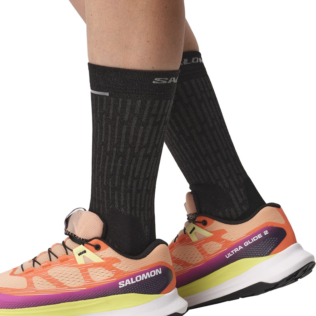 To make every trail feel like a spongy bed of pine needles, we lace into the Salomon Ultra Glide 2 Trail Running Shoe. The max stack of energized foam pads our strikes and pushes us onward, while the platform´s reverse camber geometry rolls us into effortless transitions, making our long runs feel a little shorter.