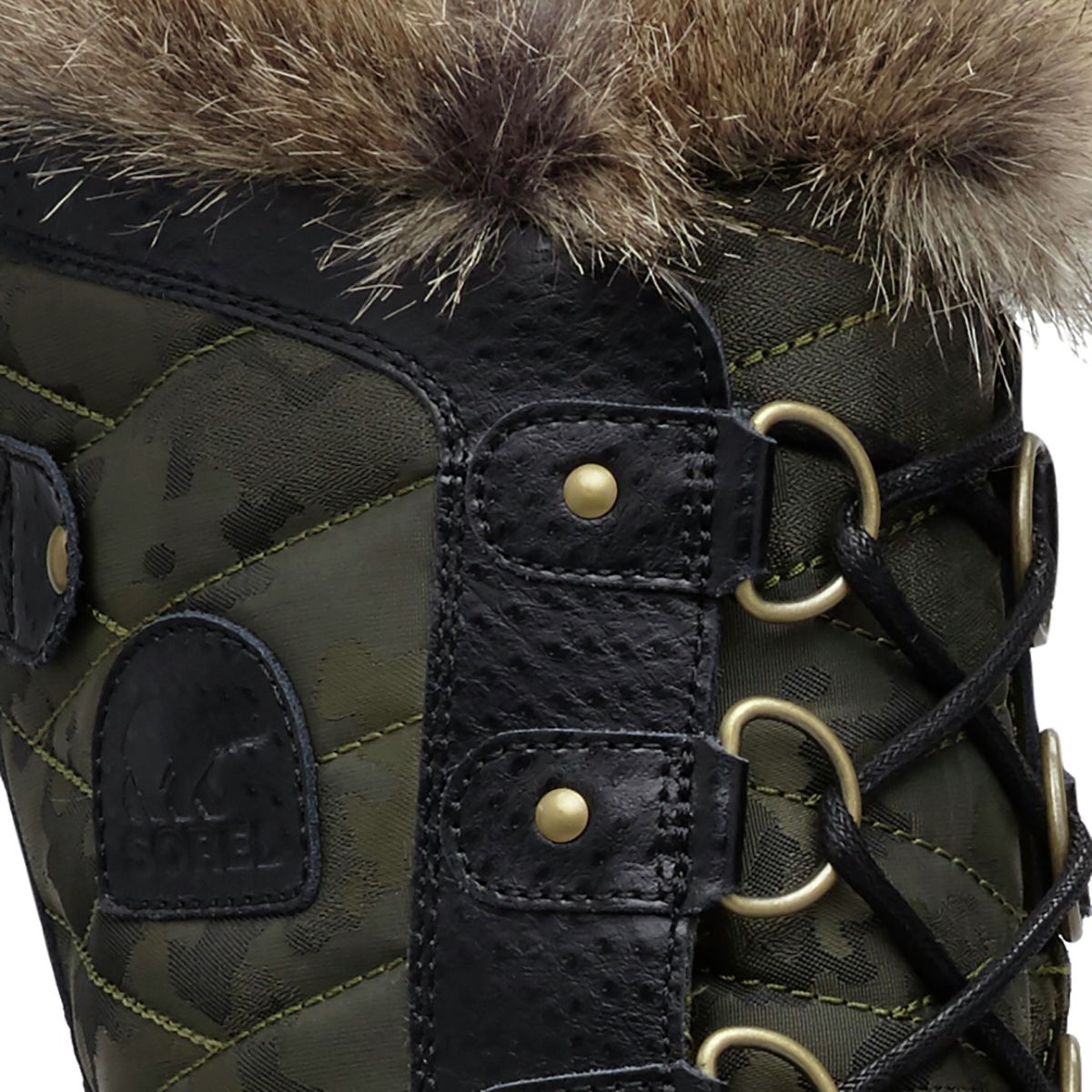• Waxed canvas upper features leather overlays and faux fur