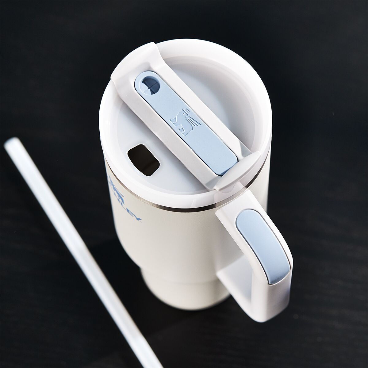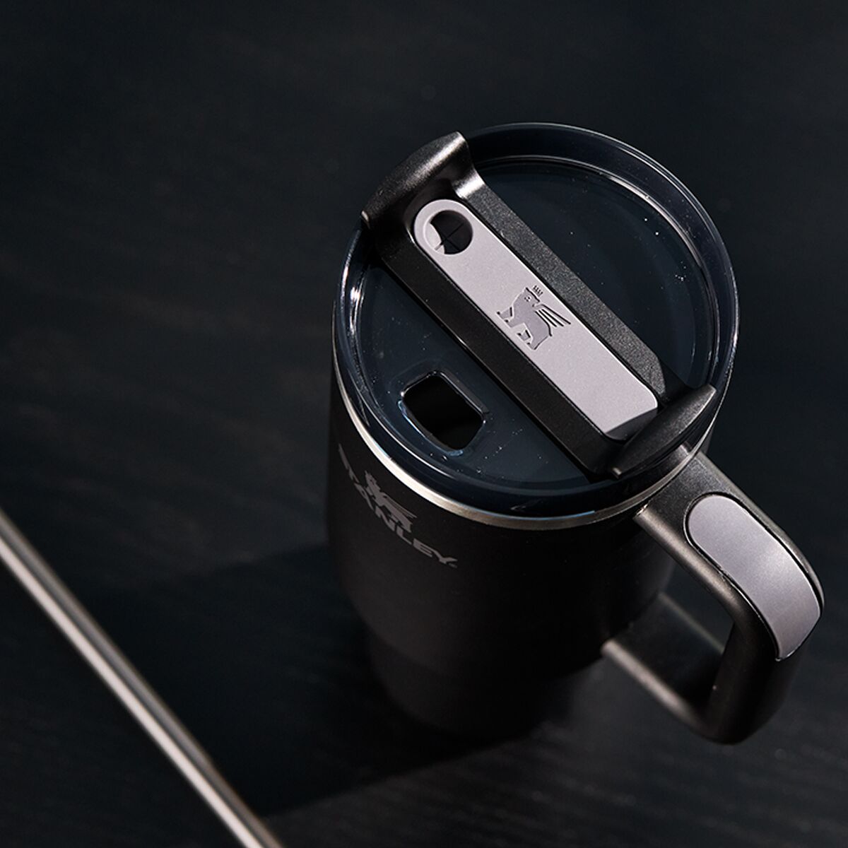 • Lid features a drink opening, reusable straw, and full-cover position