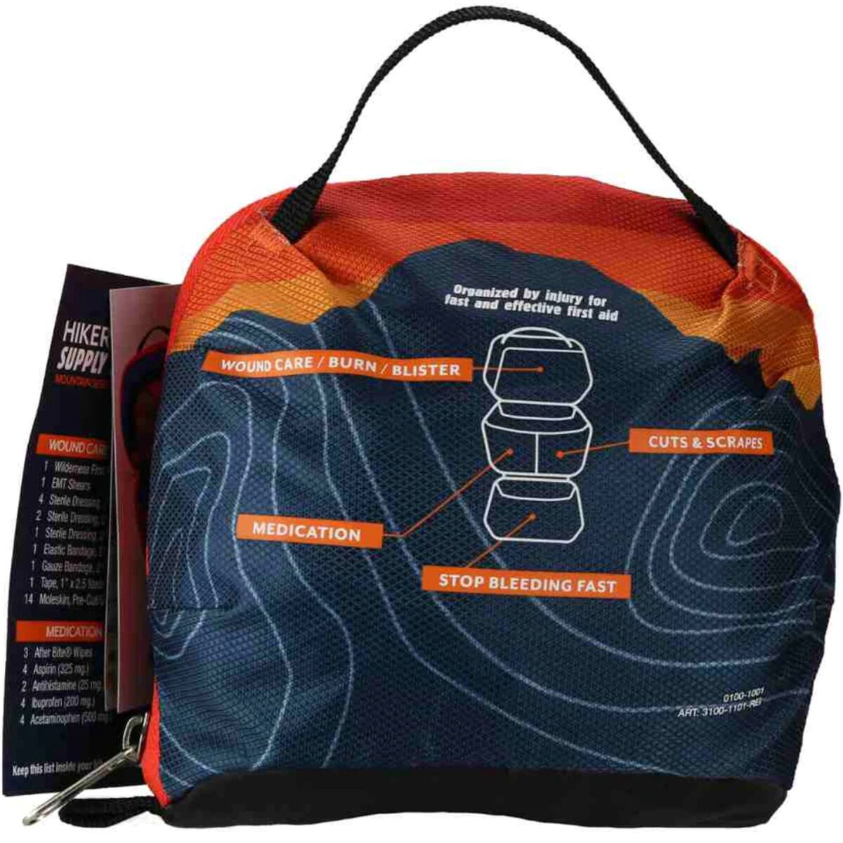 The must-have companion for overnight adventures, the Sunset Hiker contains carefully-selected first aid supplies to treat common on-the-trail injuries and illnesses. This compact hiking first aid kit features a unique sunset bag design and prepares you and a friend for whatever you may experience during a weekend on the trail.