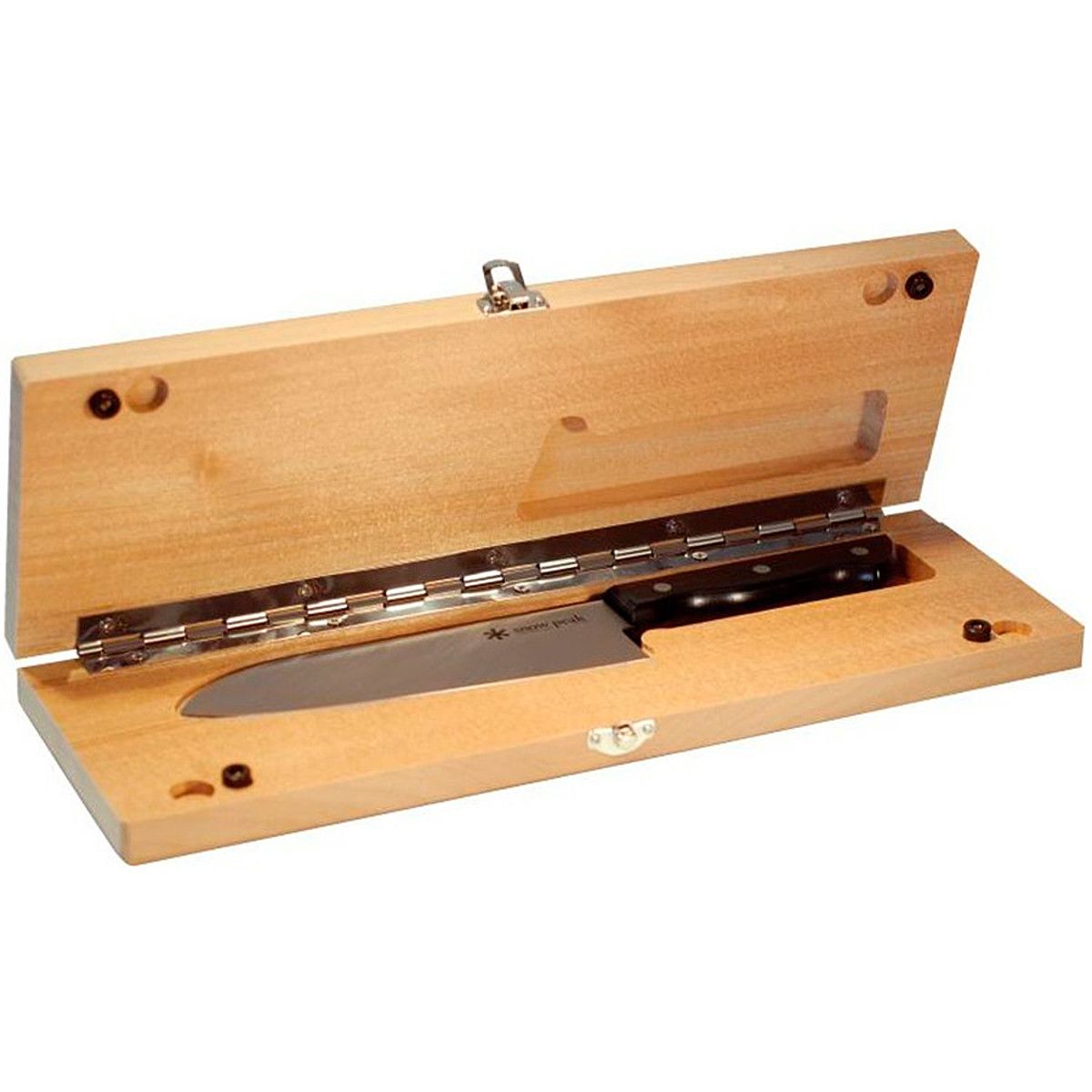 The Cutting Board Set from Snow Peak includes a folding cutting board with a knife inside for safe transportation and easy cutting at campsites. The chopping board folds in half and locks into place to safely store an included stainless-steel knife, and features rubber corners for no-slip grip on nearly any flat area.