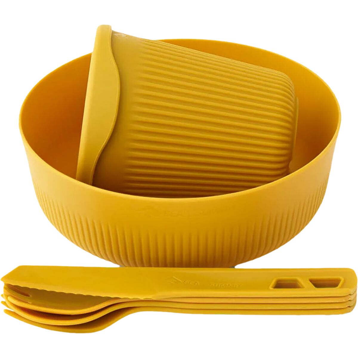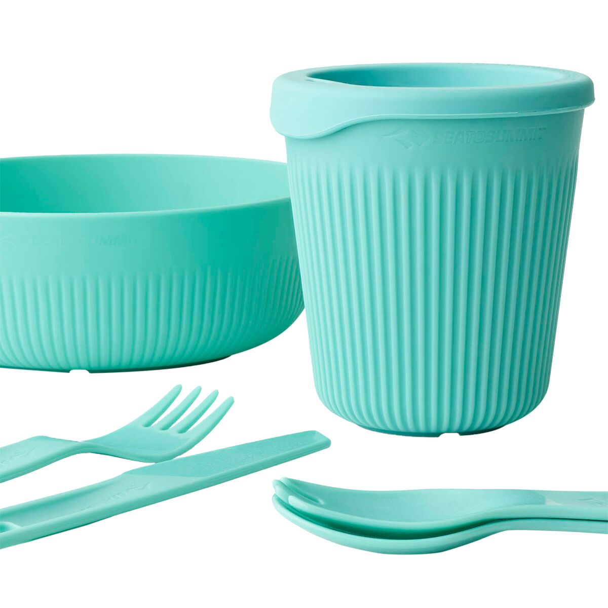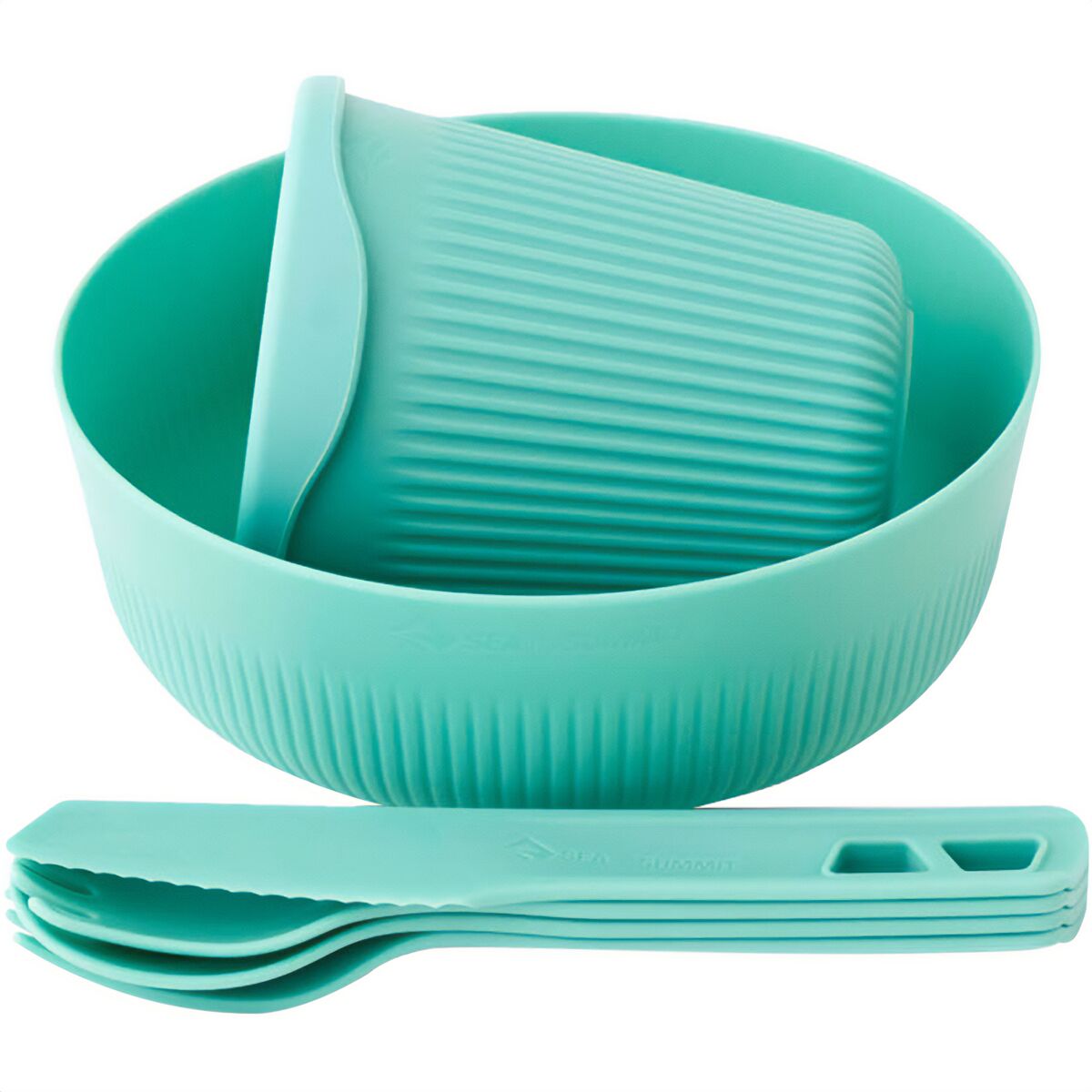 Light, strong and packable, the 6-piece Passage Dinnerware Set offers typical Sea to Summit functionality. Cool Grip sidewalls allow the user to hold the bowl and cup firmly, even when the contents are hot. Steep sidewalls keep food from spilling, and the curve between the walls and base perfectly matches our spoons and sporks. Passage cutlery snaps together for transport - or you can reverse one utensil and click the handles to a second utensil to create a long spoon or spork. Who thinks of that? We do.