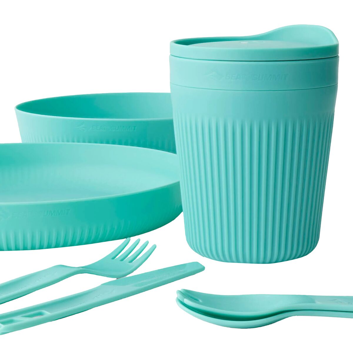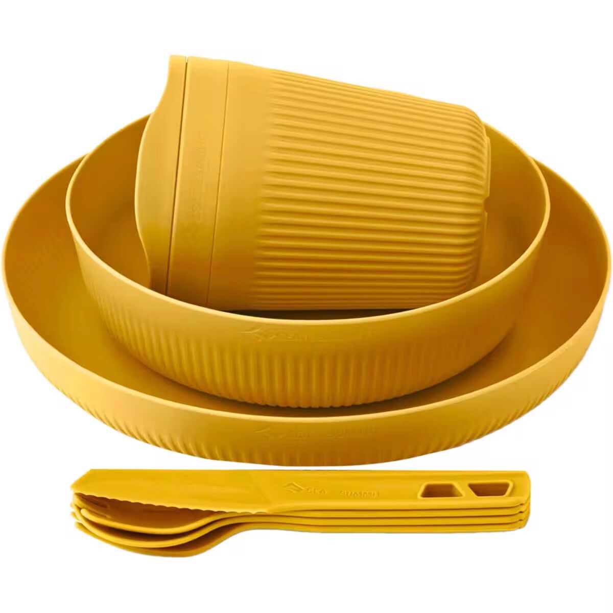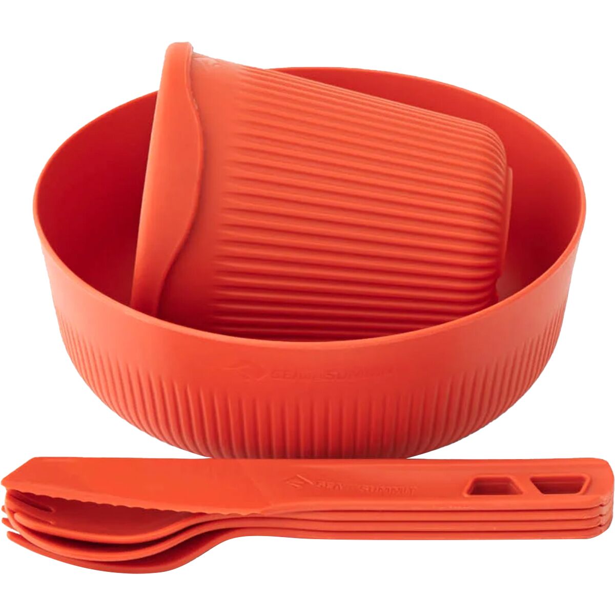 Light, strong and packable, the 6-piece Passage Dinnerware Set offers typical Sea to Summit functionality. Cool Grip sidewalls allow the user to hold the bowl and cup firmly, even when the contents are hot. Steep sidewalls keep food from spilling, and the curve between the walls and base perfectly matches our spoons and sporks. Passage cutlery snaps together for transport - or you can reverse one utensil and click the handles to a second utensil to create a long spoon or spork. Who thinks of that? We do.