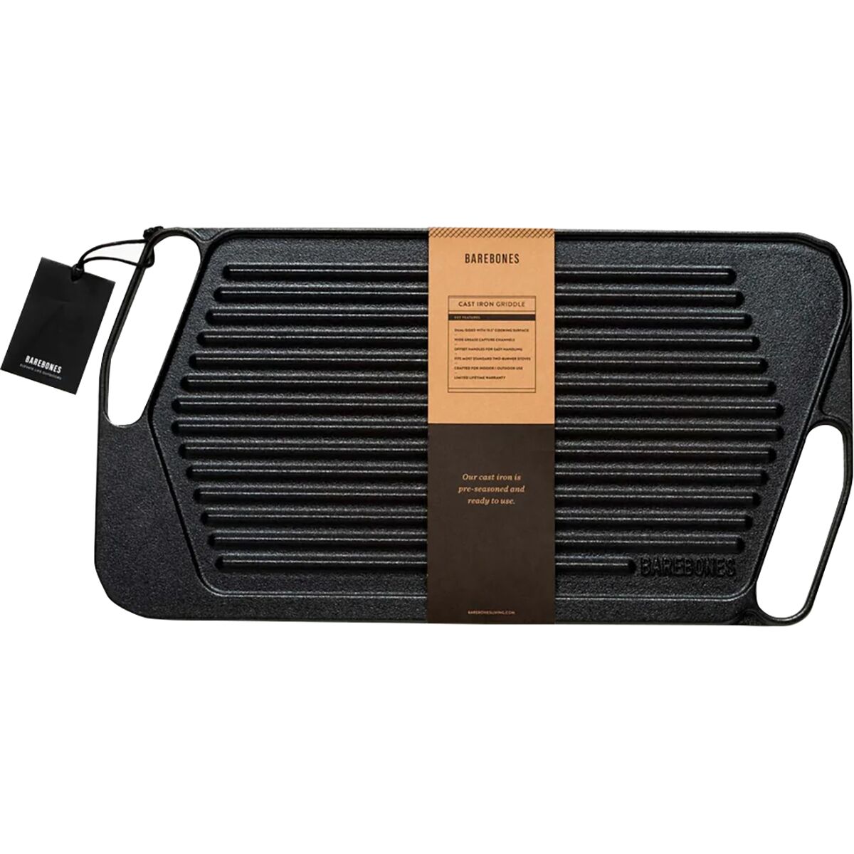 Barebones Cast Iron Griddle A reversible cast iron griddle perfect for cooking for a crowd. Use flat side for eggs, crab cakes, and fajitas, then flip to the grill side for...