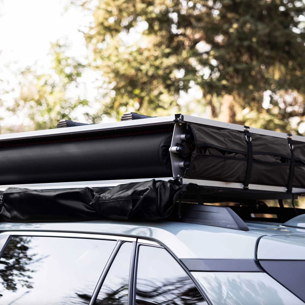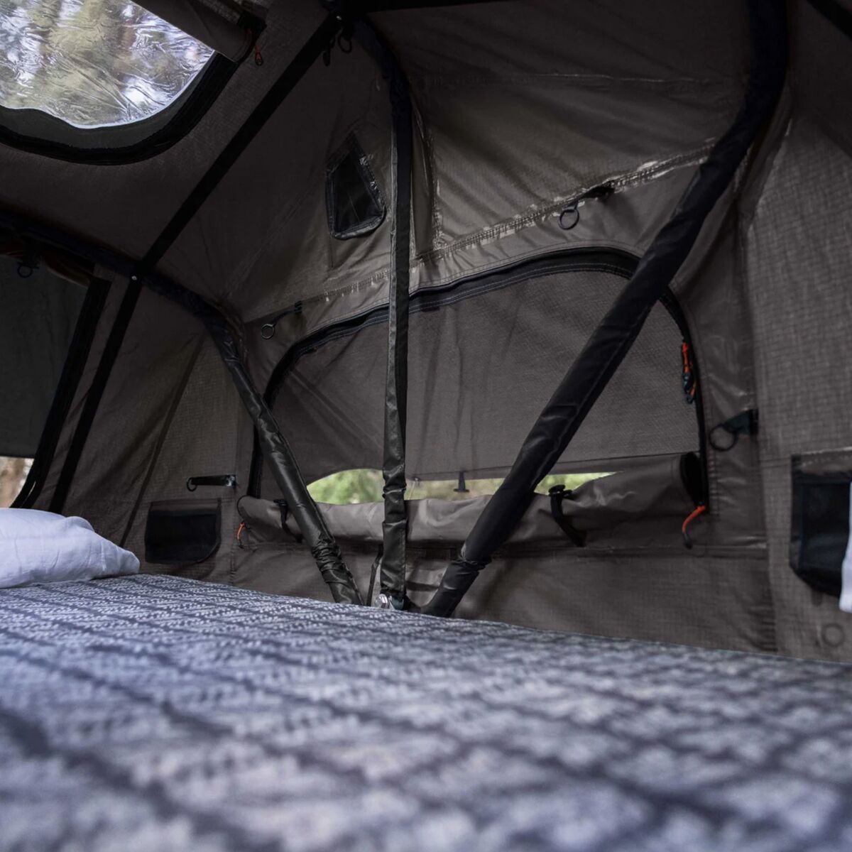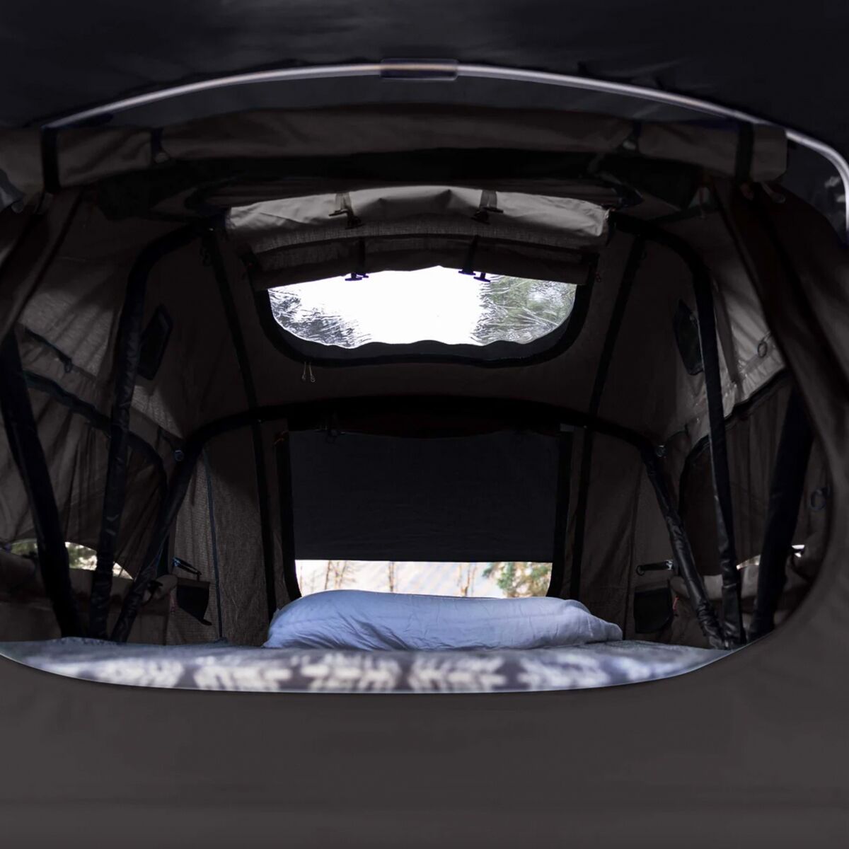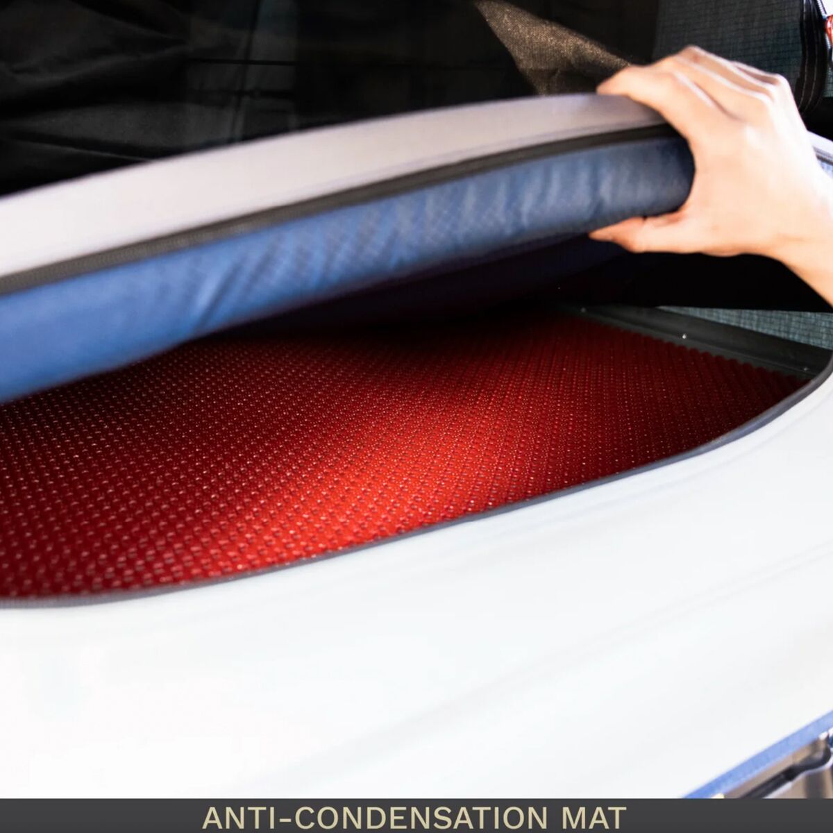 The Vagabond Lite Rooftop Tent is a cozy, compact sleep solution on cross-country road trips. It´s sized similarly to a two-person backpacking tent for a more minimalist feel while we´re on the road. Although it isn´t as large as other rooftop shelters, it still packs in an abundance of luxury comfort. A three-inch foam mattress delivers cushioning that far surpasses an air mattress on the chilly ground. Both the tent body and rainfly are coated with weather-resistant PU to prevent a storm from ruining our sleep. On a clear night, skylight windows and mesh panels on each side of the tent allow us to catch views of our bucolic surroundings.
