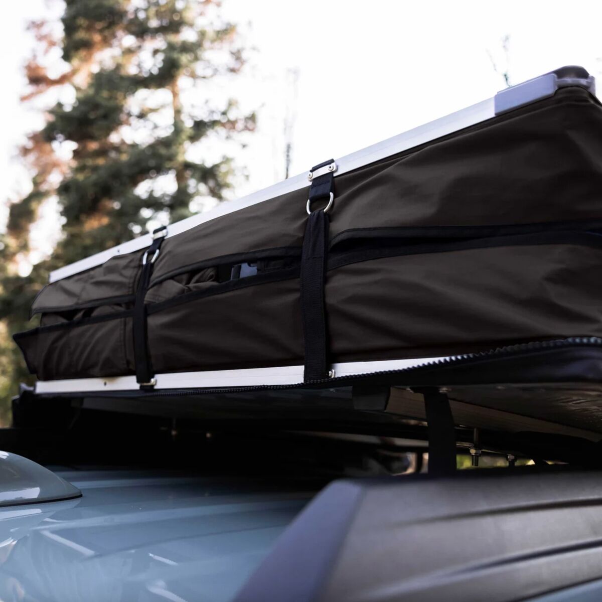 - Minimalist rooftop tent offers shelter when on the road
