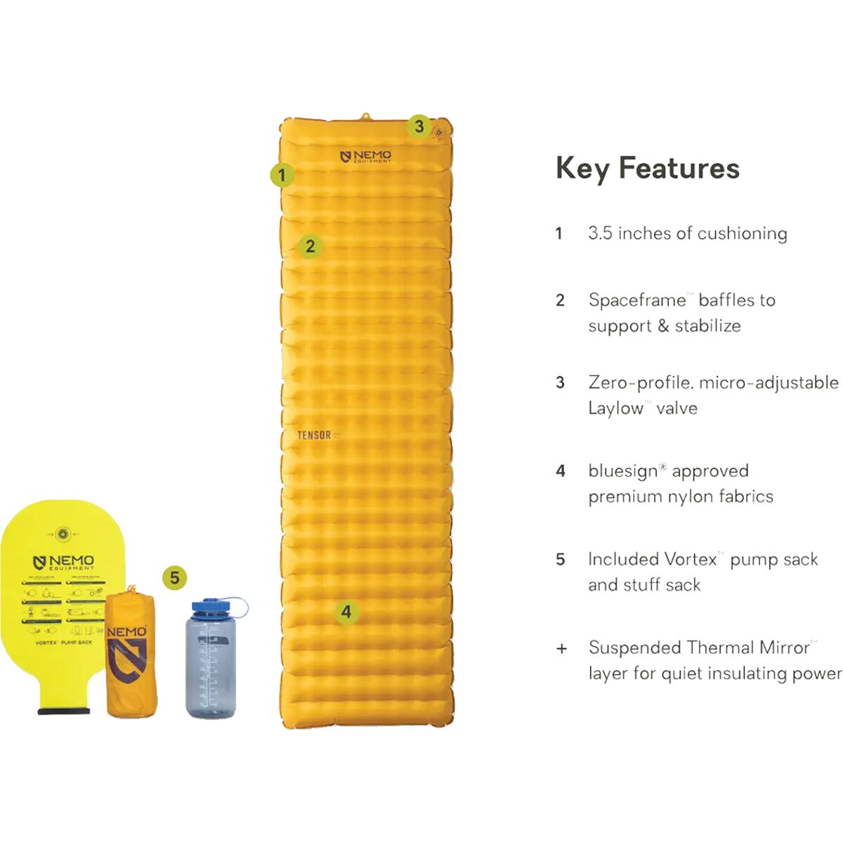 Packing to the size of a 32-ounce water bottle and delivering ground insulation, the NEMO Tensor Trail Sleeping Pad is a comfort item and ultralight option in one. The floating Thermal Mirror reflects our body heat back to us without making a sound when we shift, and the zero-profile valve lets us get the feel just right for ultimate comfort in the backcountry. From camp to camp, this pad rolls up and stuffs away compactly, adding just a pound to our pack.