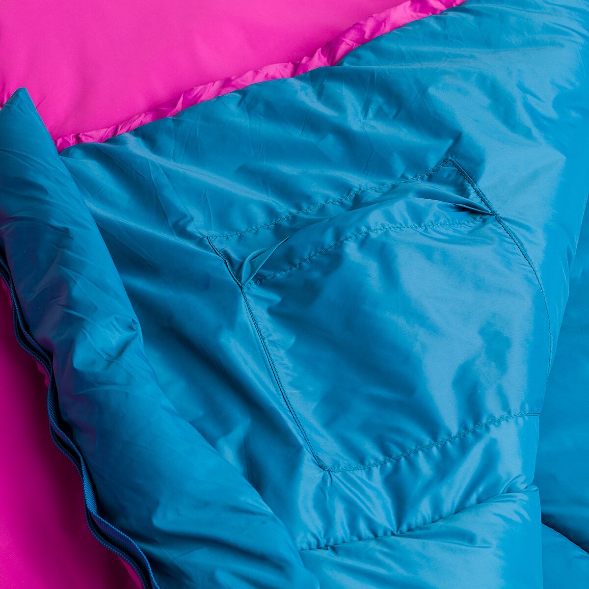 We built the restriction-free rectangular Groundwork Single Sleeping Bag for the freedom to pantomime our action-packed dreams or invite our furry comrade in for chilly evening snuggles. The rugged yet soft-to-the-touch material makes us feel like we´re in our bed back home, while still holding up against our pup´s need to dig to comfort. Whether we´re camping in spring´s dampness or fall´s briskness, the water-resistant finish and lofty, heat-retaining fibers keep us dry and cozy.