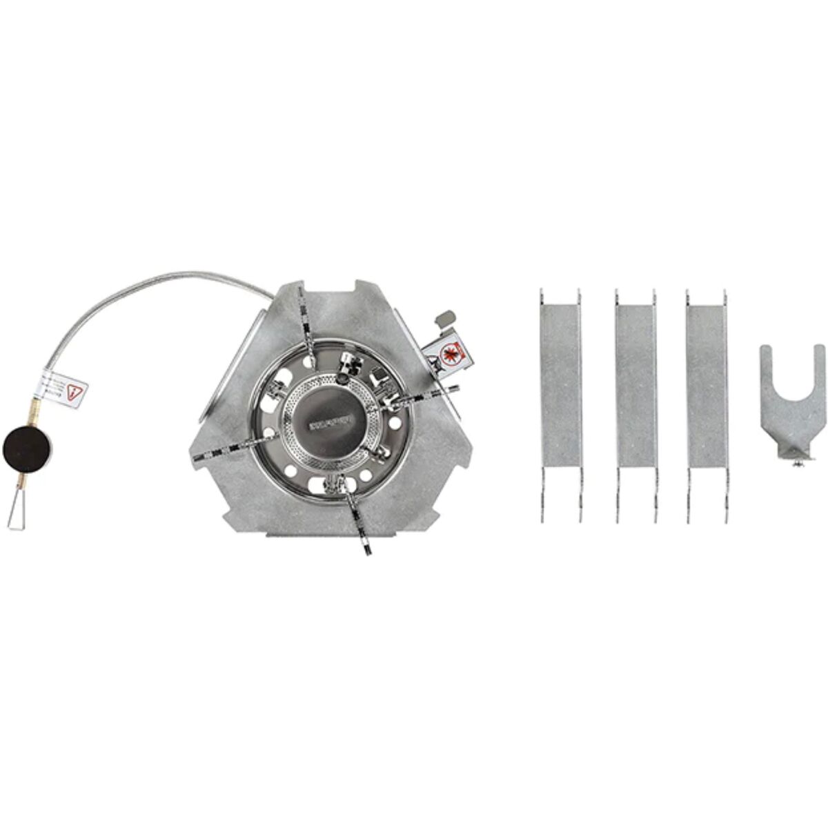 - 1 Kovea Burner (wind guard included), 1 tripod, 1 skillet, 1 side table