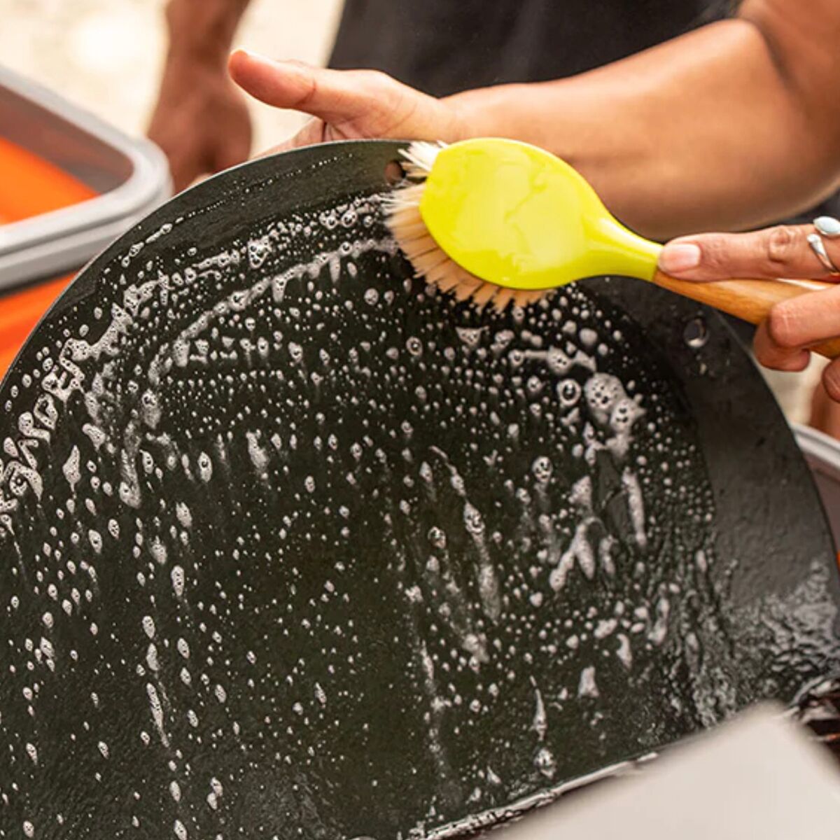 - Enamel-coated Disco Skillet retains heat and is ultra-durable